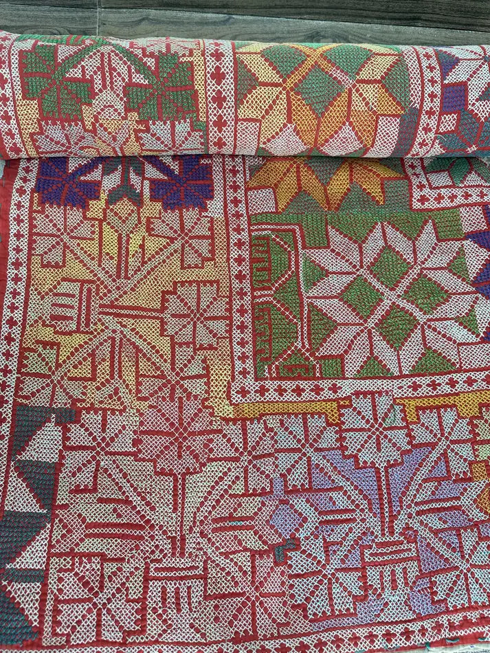 Introducing a vibrant masterpiece, crafted with love and care, our one-of-a-kind Vintage Cotton Suzani Throw is a true testament to exquisite craftsmanship. Measuring a generous 180 cm x 120 cm, this hand-embroidered throw is stitched by skilled artisans from the villages of India. Each piece is a unique creation, telling its own story.