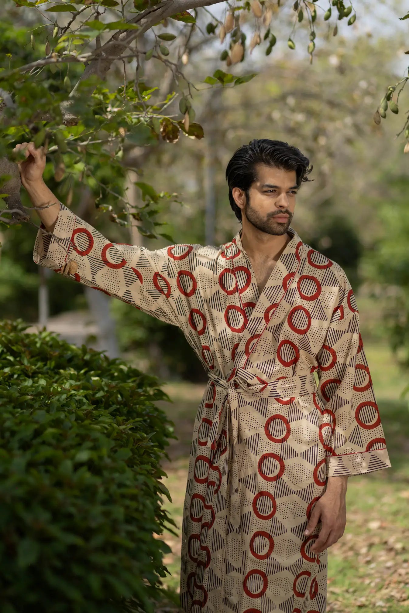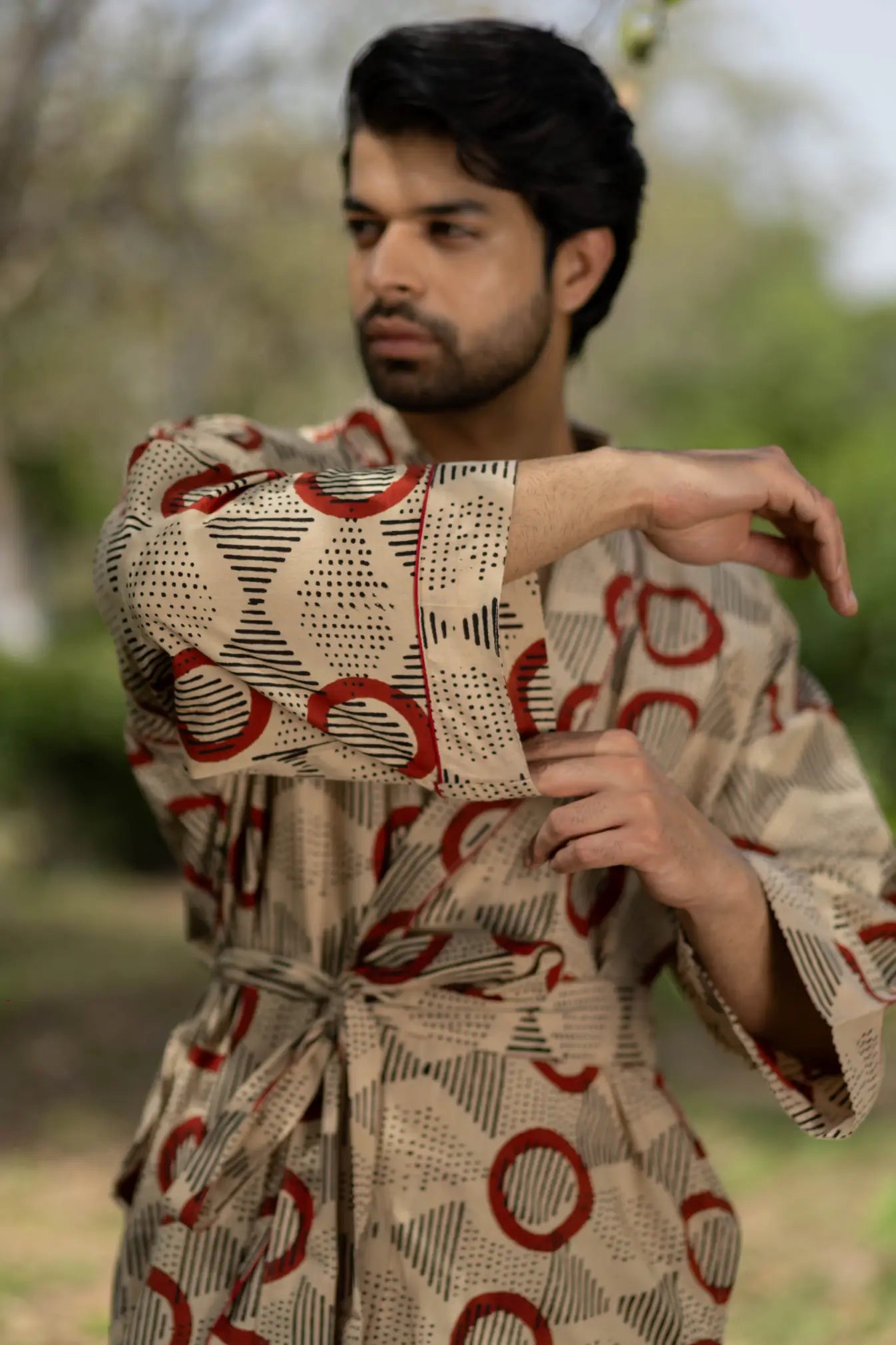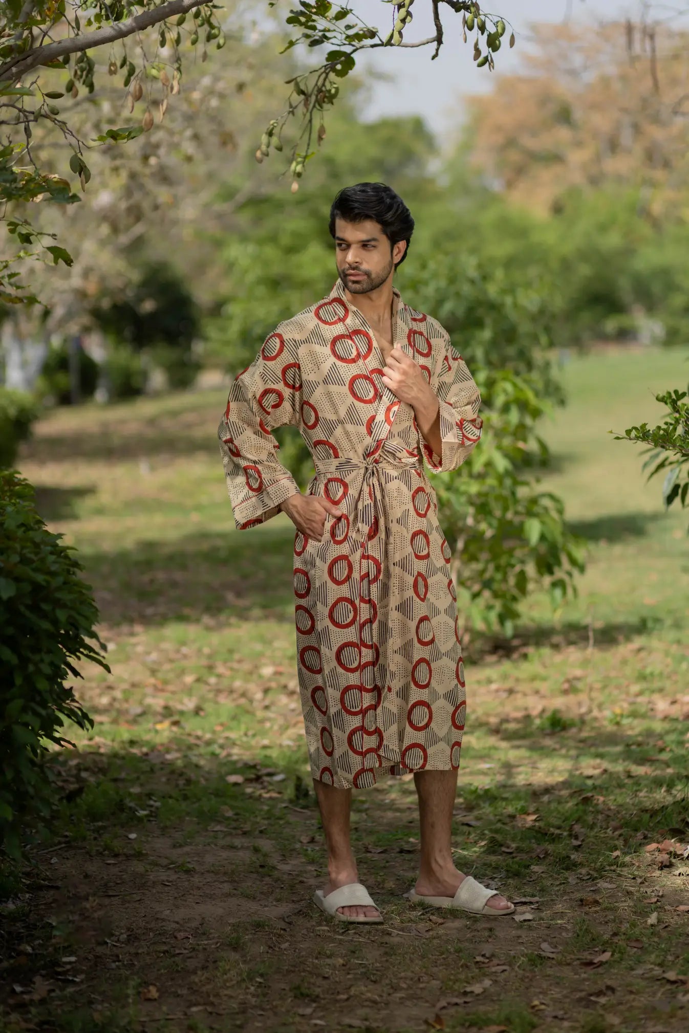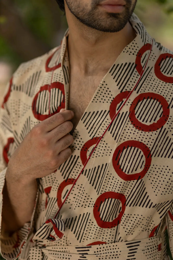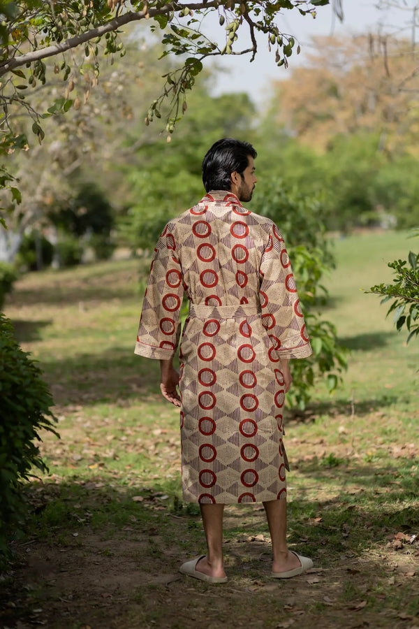 Pure Cotton Boho Men Kimono Robe | Geometric Luxury Dressing Gown Summer Loungewear, Onesie Unisex Bathrobe Relax Fit Beach Outfit Cardigan
