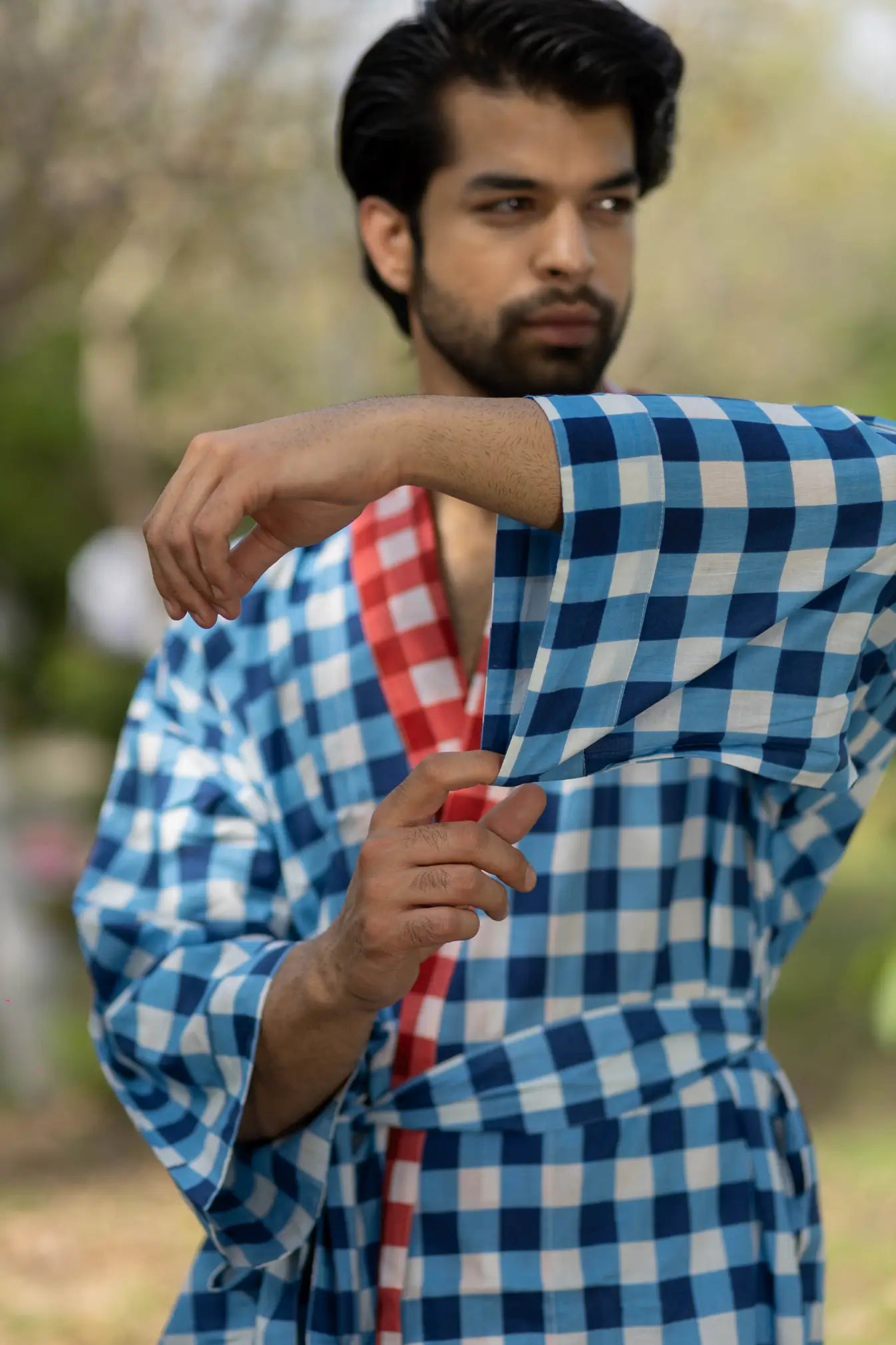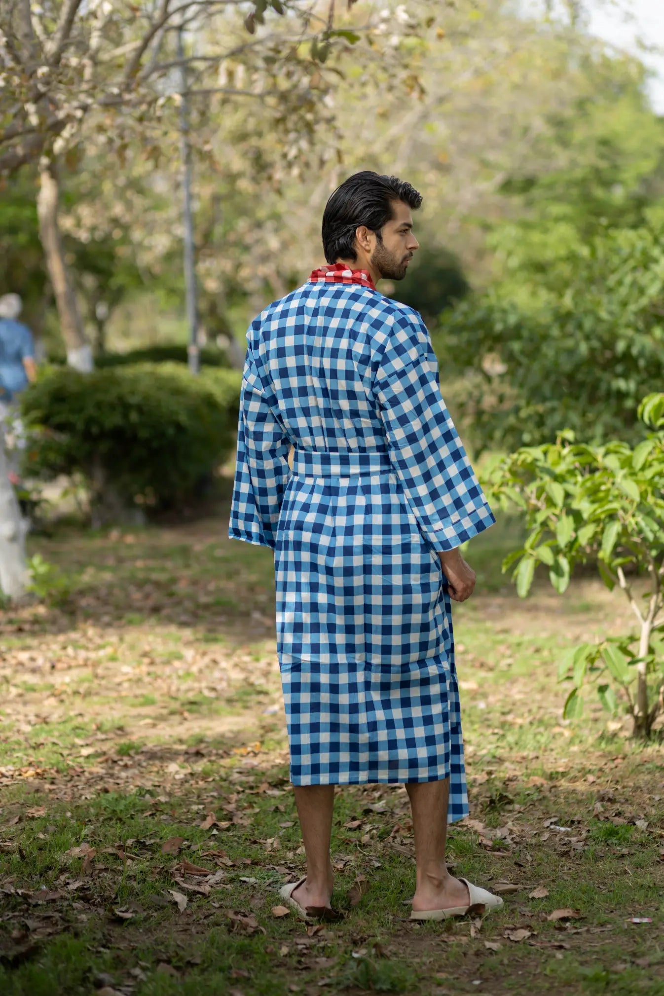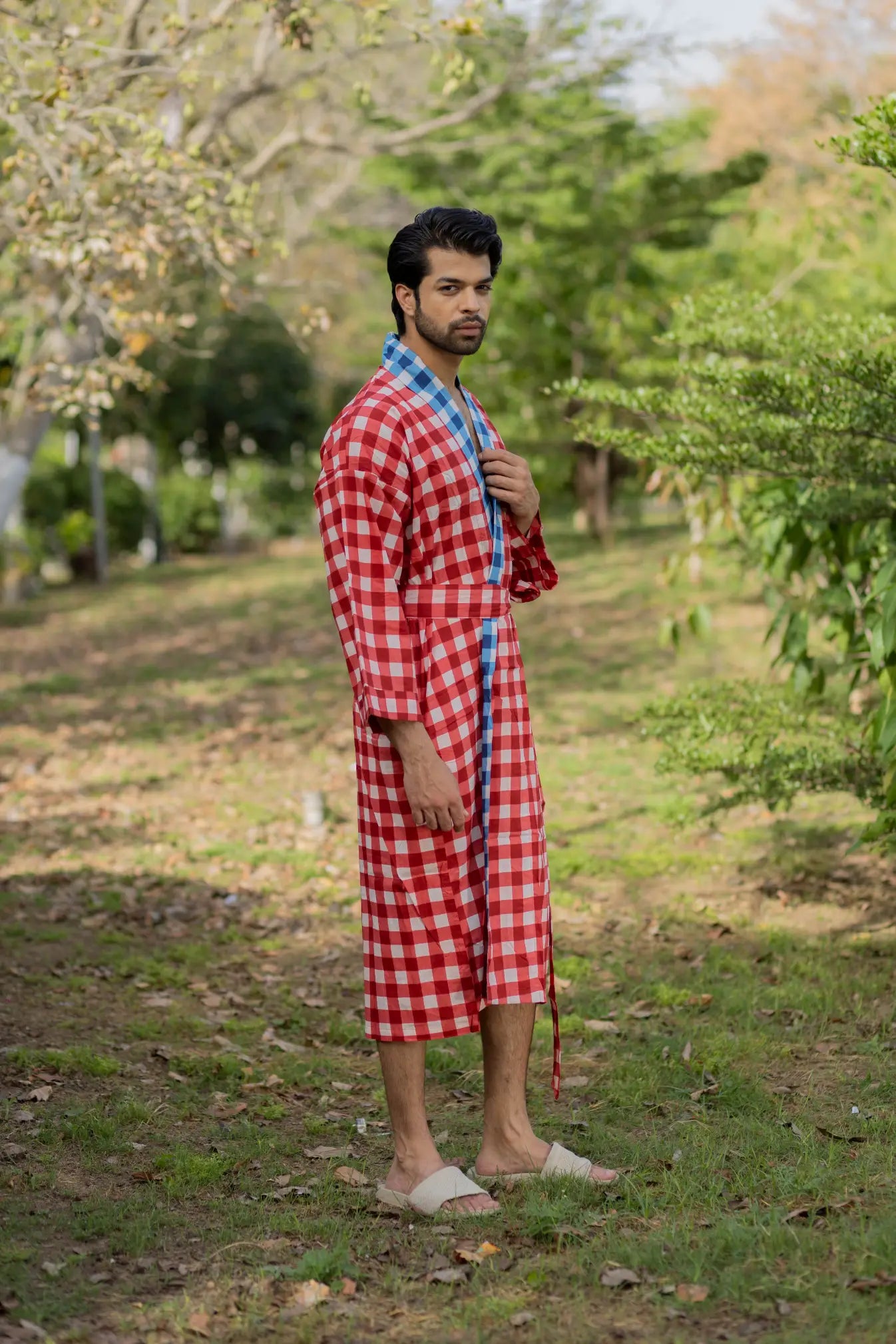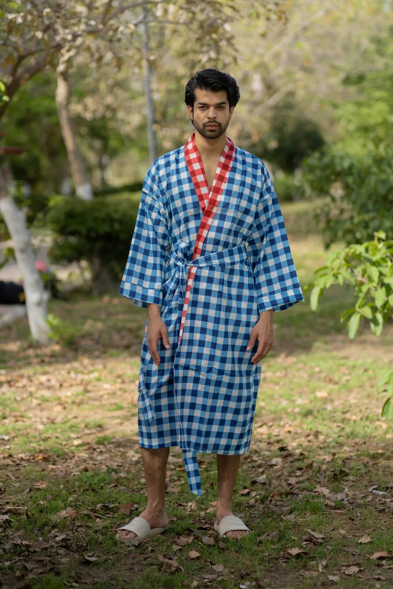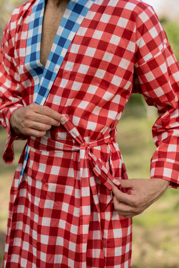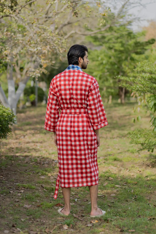 Pure Cotton Boho Men Kimono Robe | Geometric Luxury Dressing Gown Summer Loungewear, Reversible Unisex Bathrobe Relaxed Fit Beach Outfit