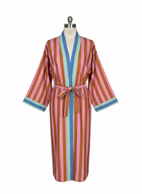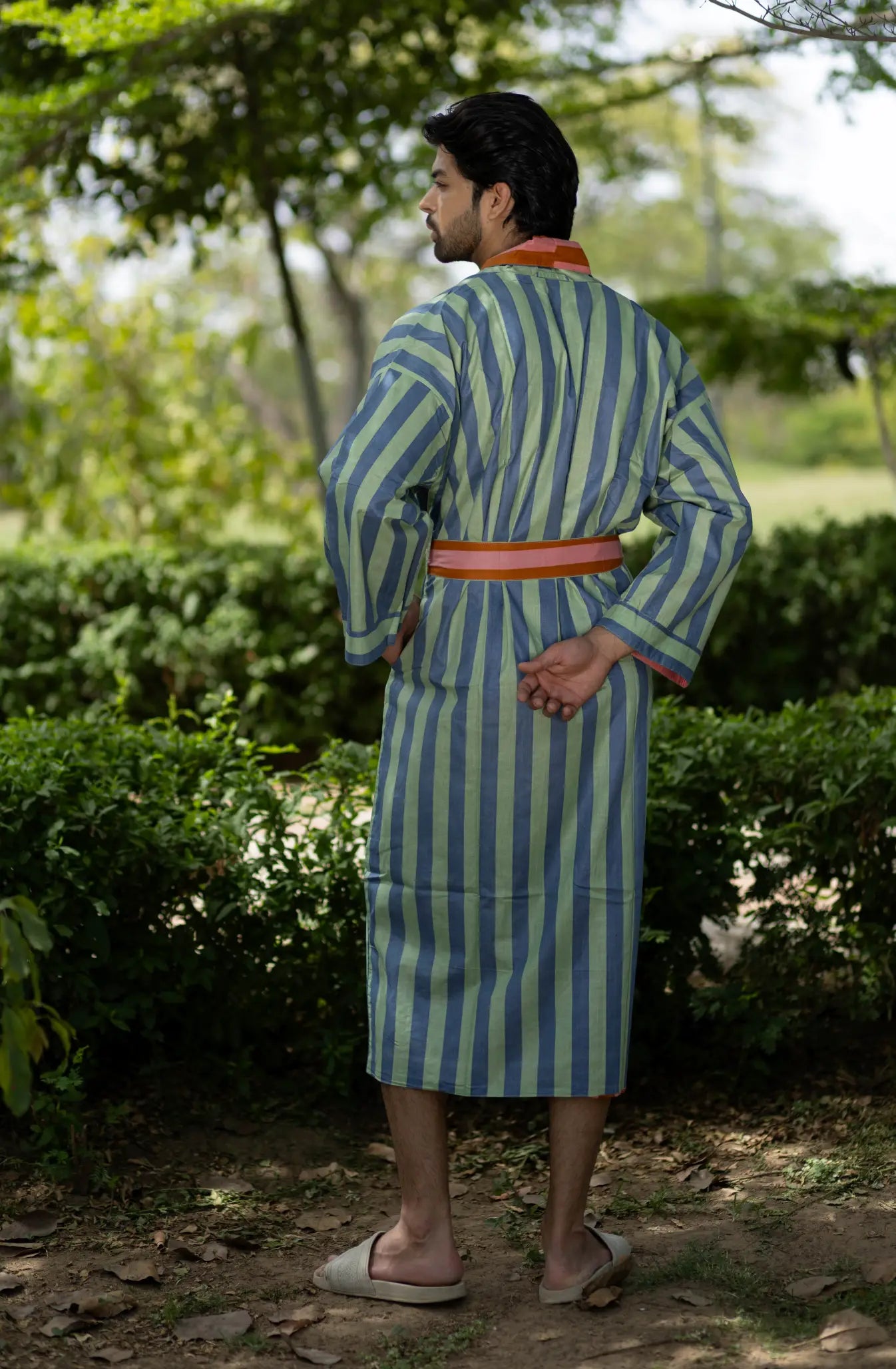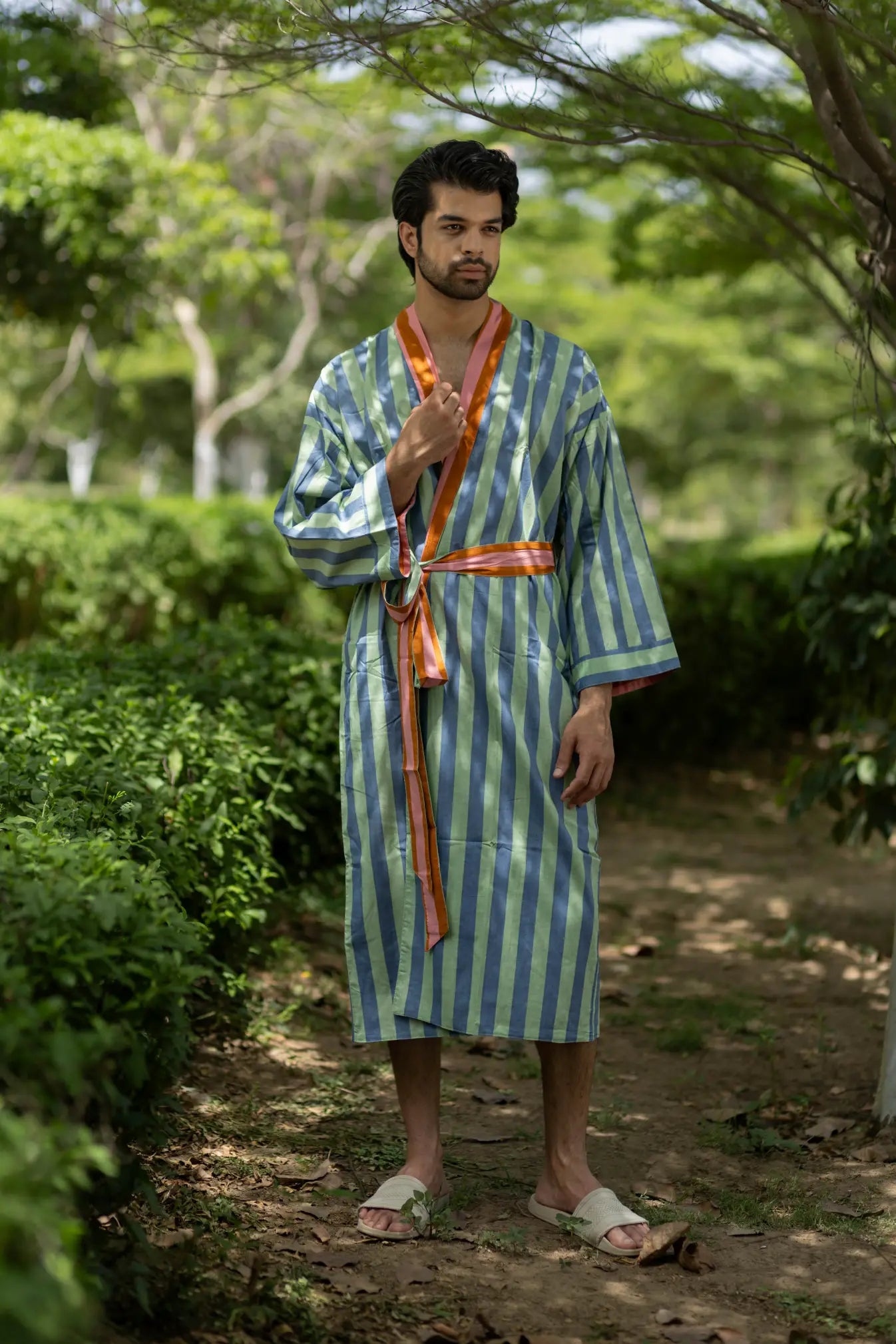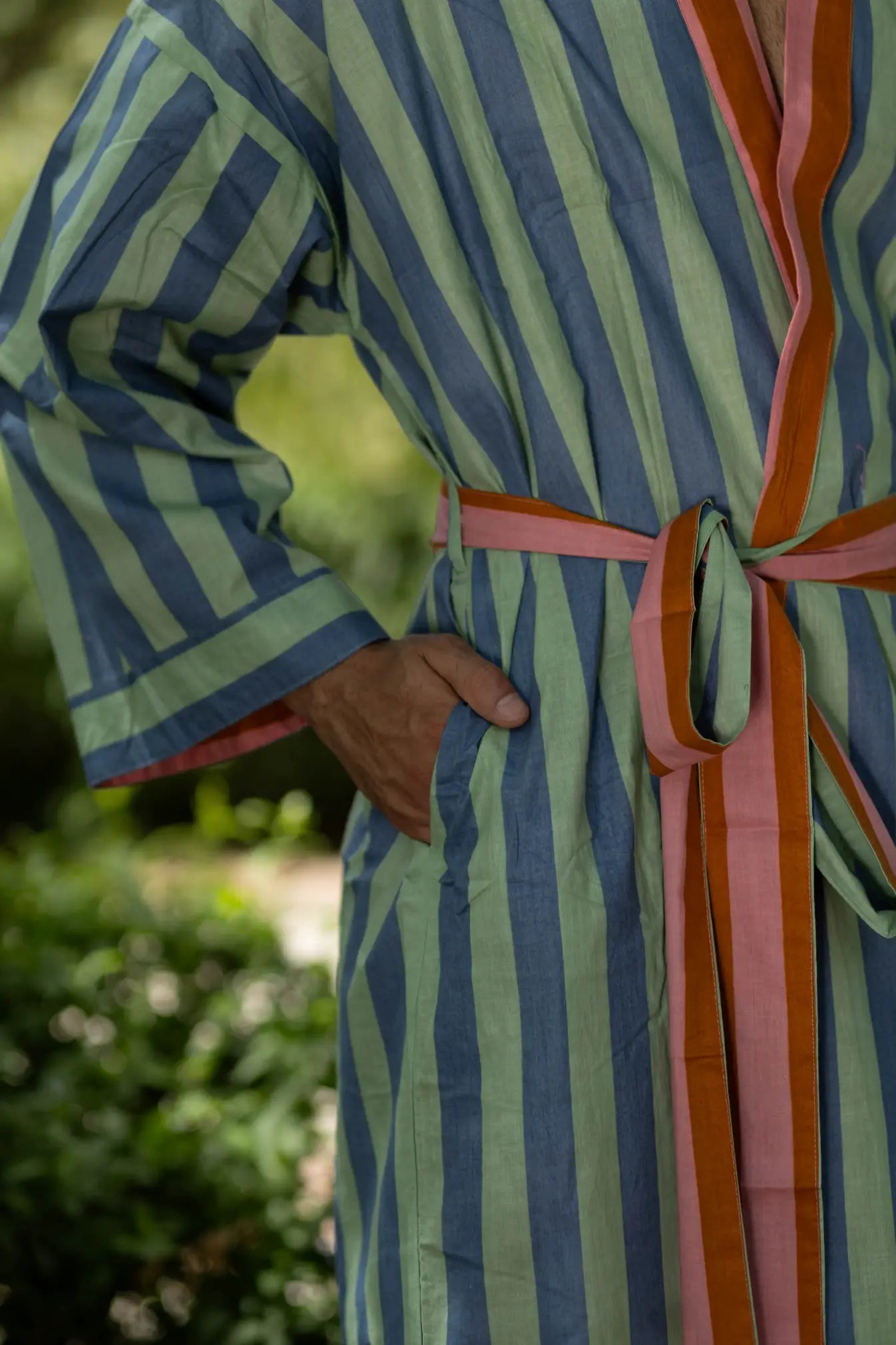 Pure Cotton Boho Men Kimono Robe | Geometric Luxury Dressing Gown Summer Loungewear, Reversible Unisex Bathrobe Relaxed Fit Beach Outfit