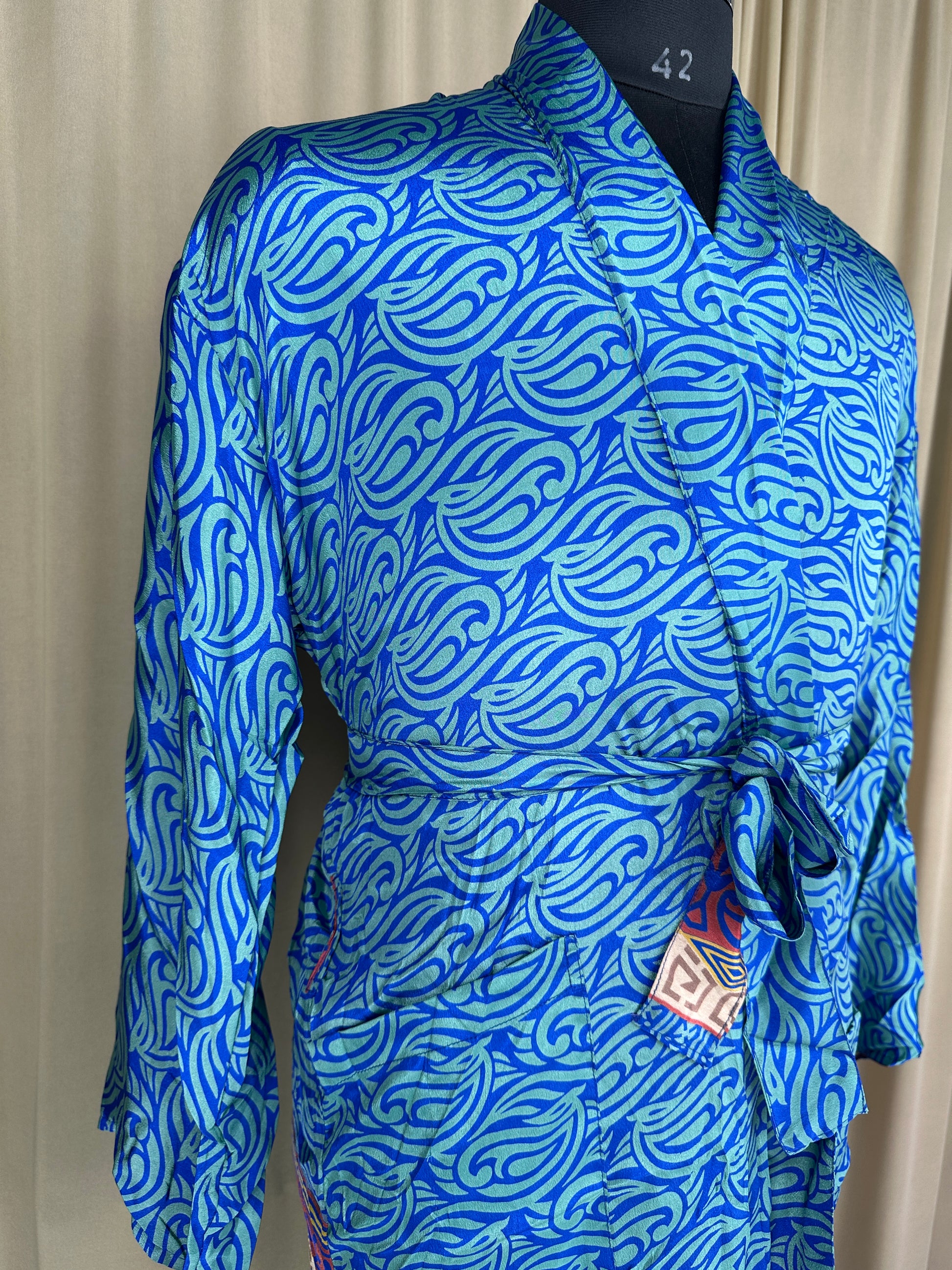Created with the finest attention to detail, this robe is a symbol of timeless elegance and sophistication. Made from the upcycled silk sari, it offers a sumptuous soft feel against your skin, enveloping you in pure comfort and indulgence.