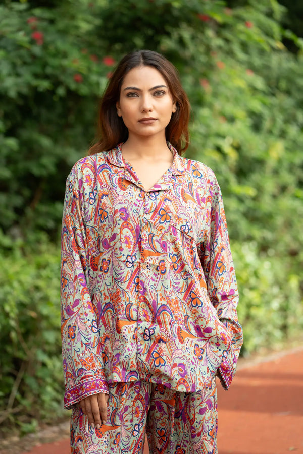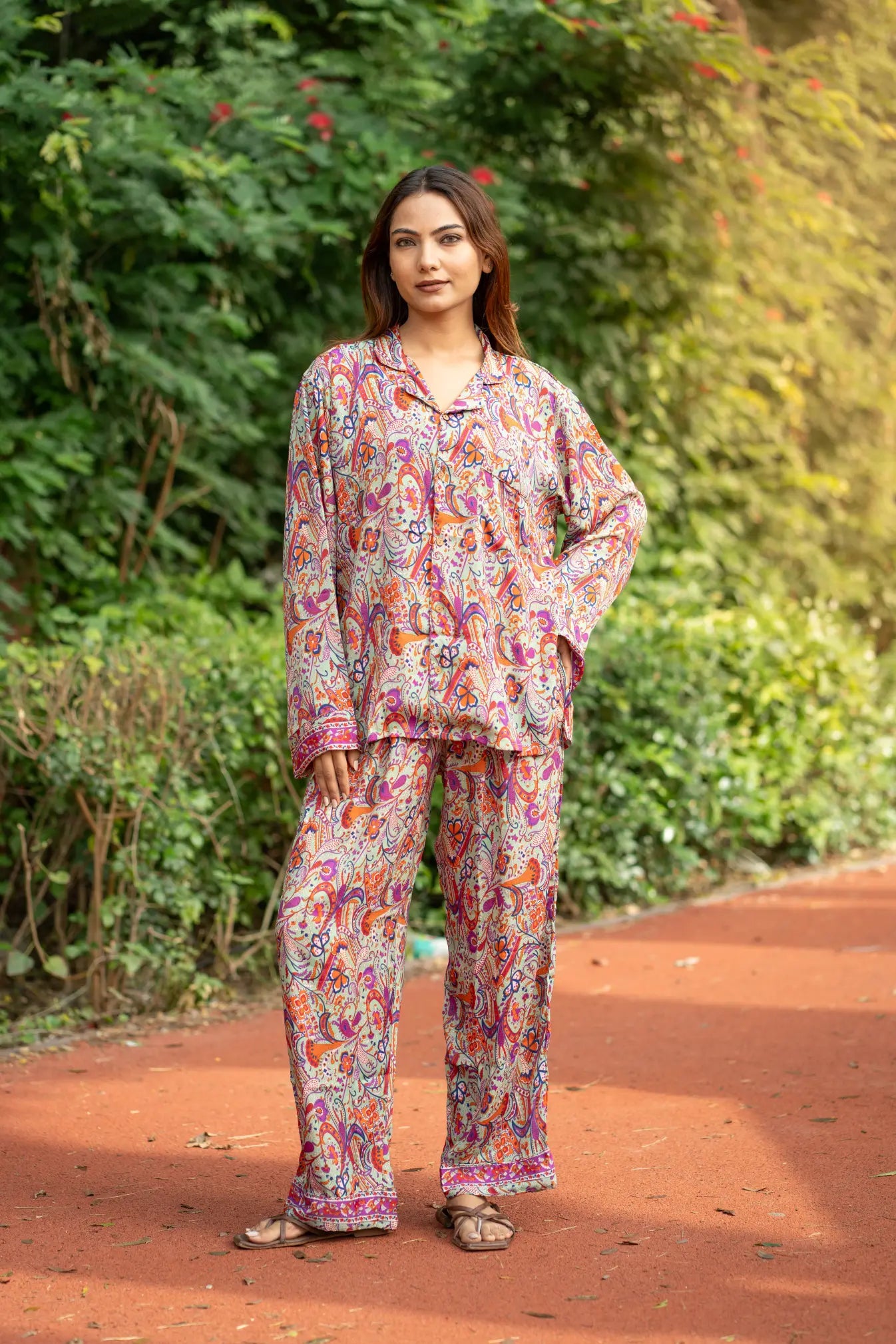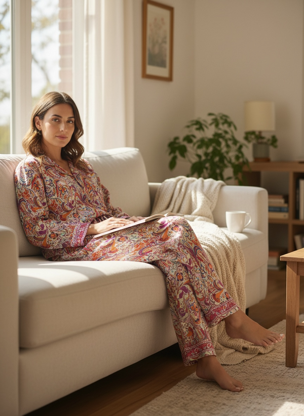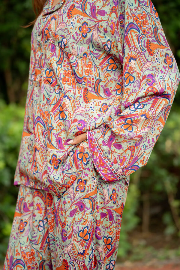 Silk Blend Women Pyjama Set | Silky Soft Cozy Breathable Bridal Nightwear, Paisley Pattern With Pockets, Bridesmaids PJ, Unique Gift For Her