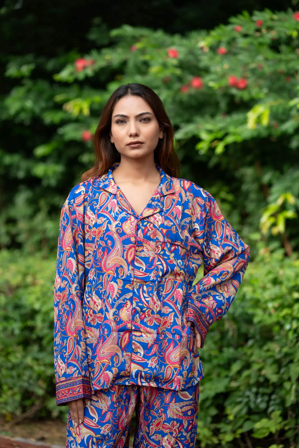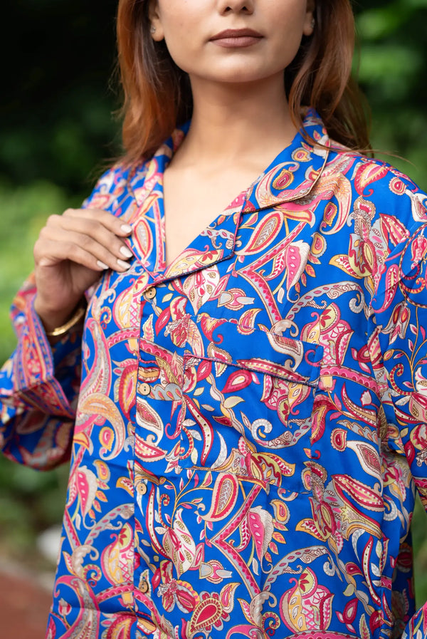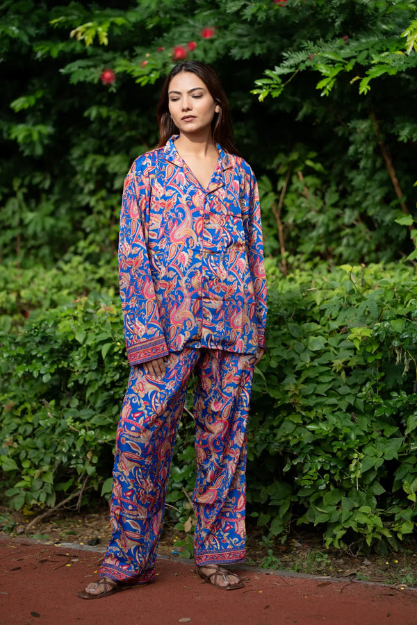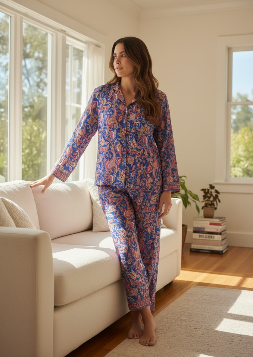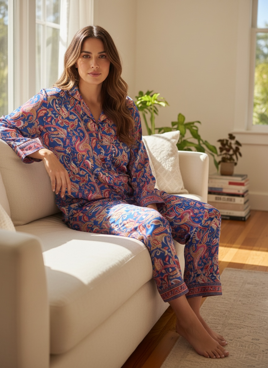 Silk Blend Women Pyjama Set | Silky Soft Cozy Breathable Bridal Nightwear, Paisley Pattern With Pockets, Bridesmaids PJ, Unique Gift For Her