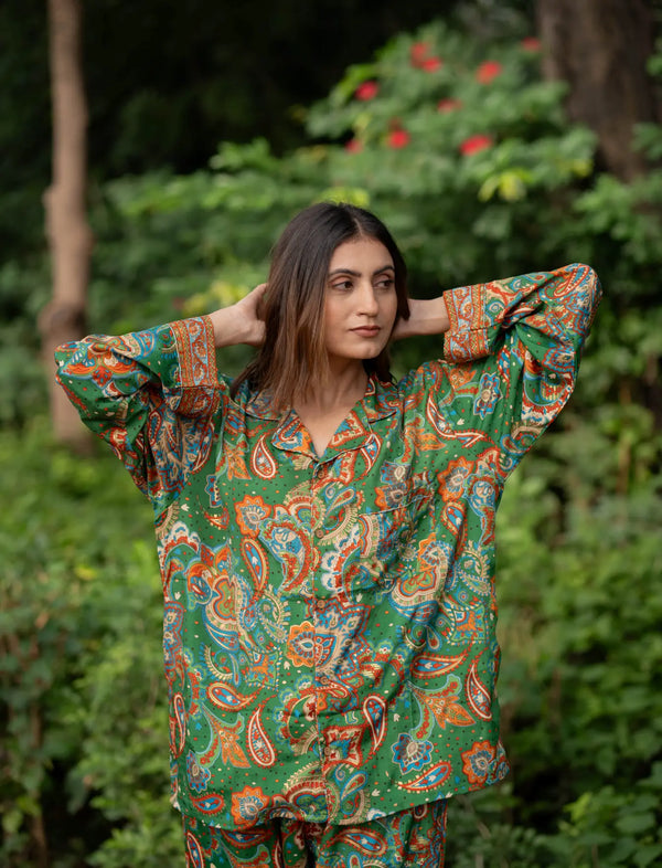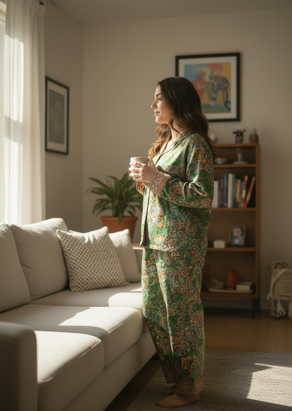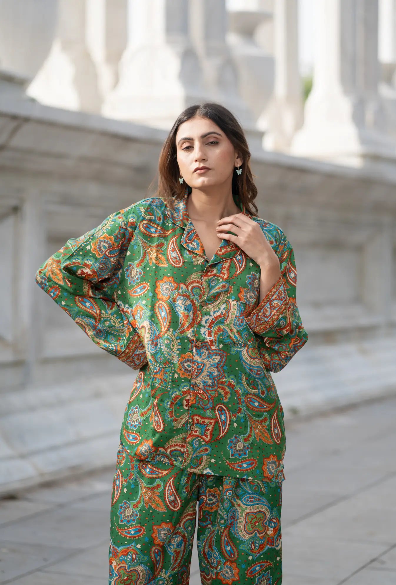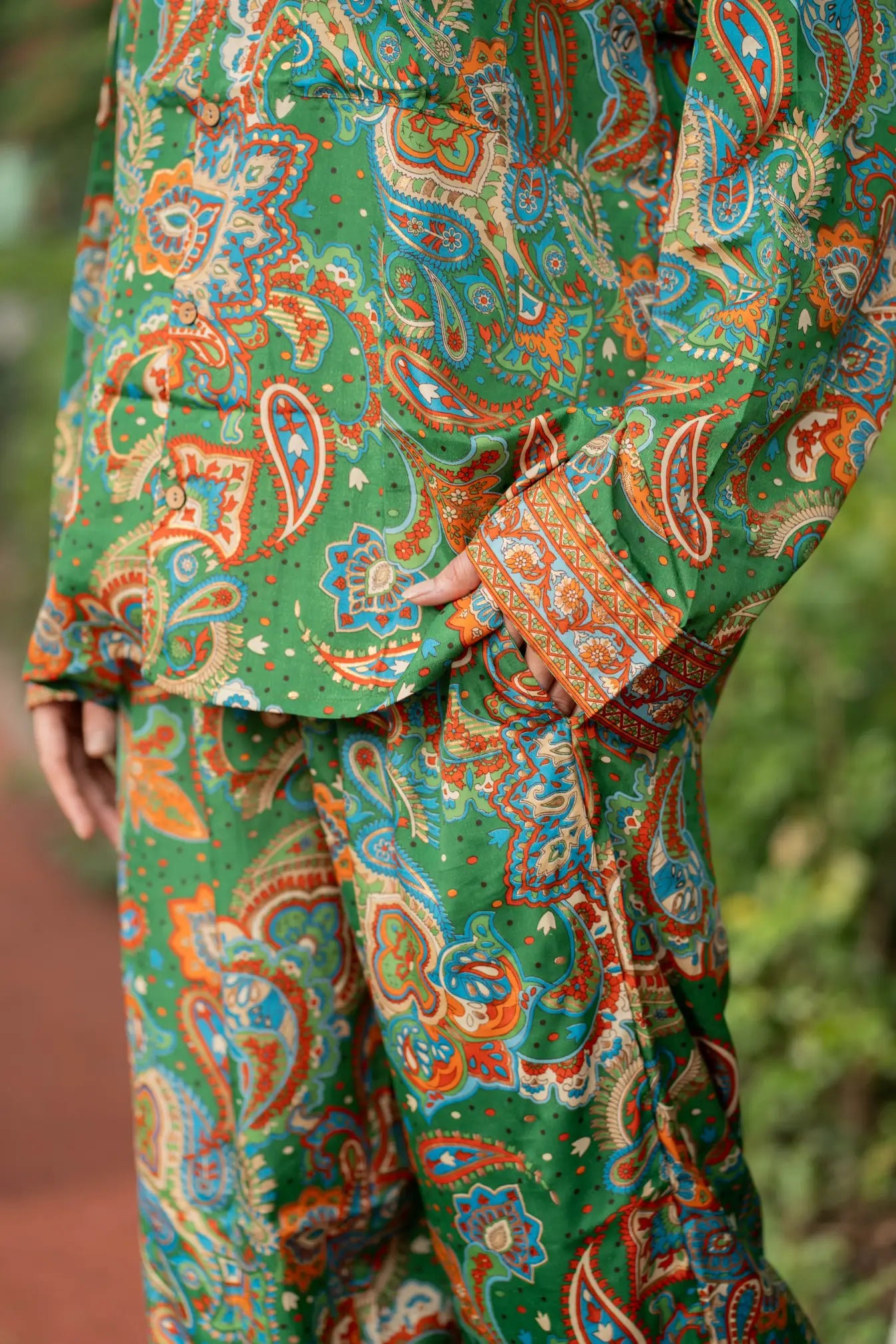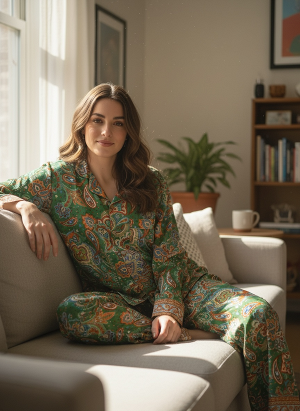 Silk Blend Women Pyjama Set | Silky Soft Cozy Breathable Bridal Nightwear, Paisley Pattern With Pockets, Bridesmaids PJ, Unique Gift For Her