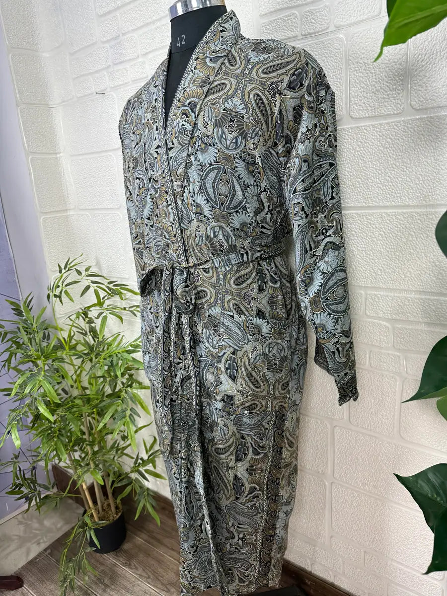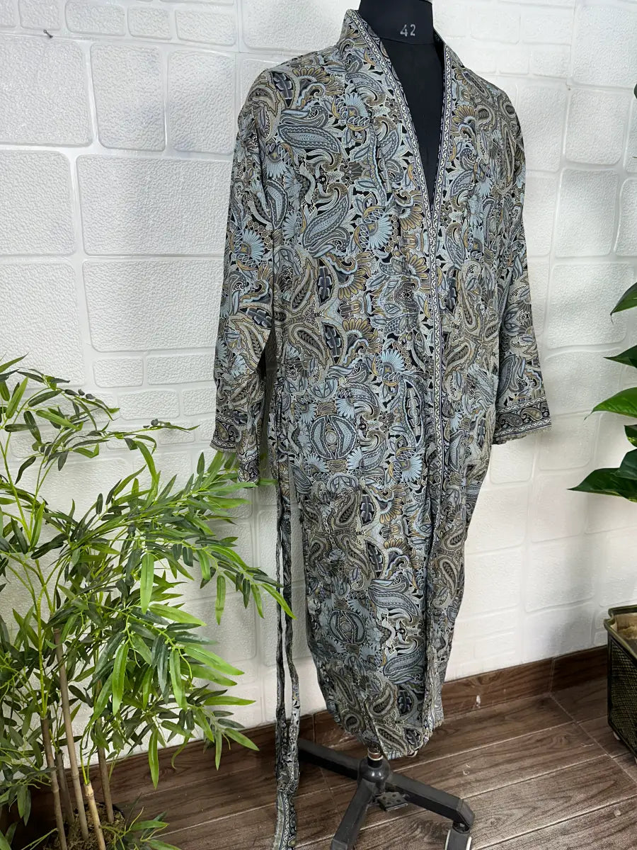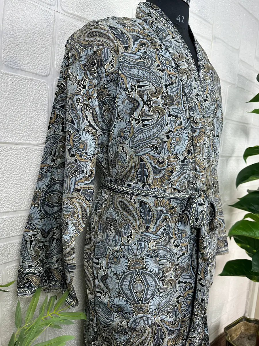 Boho Men Silk Kimono Robe, Luxury Silk Dressing Gown for Man, Long House Beach Artist Bathrobe, Birthday Present for husband, Gift for Him