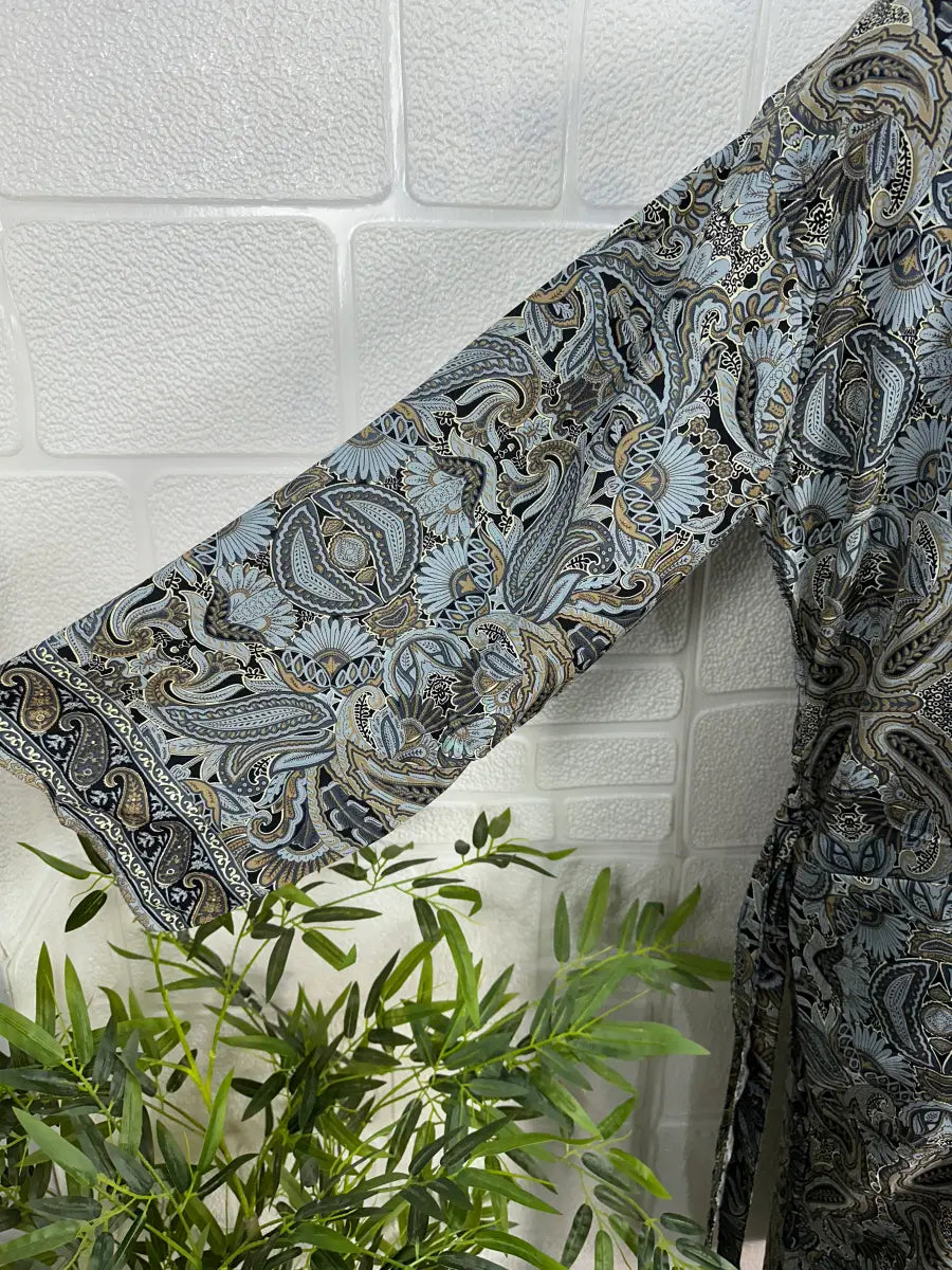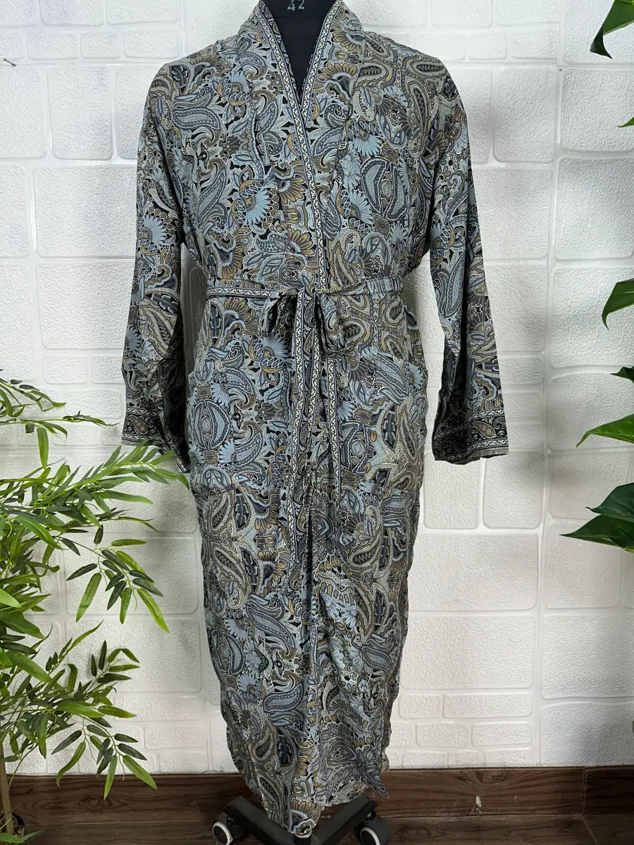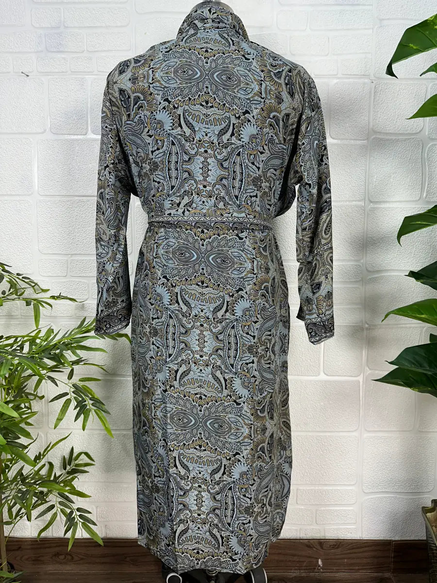 Boho Men Silk Kimono Robe, Luxury Silk Dressing Gown for Man, Long House Beach Artist Bathrobe, Birthday Present for husband, Gift for Him