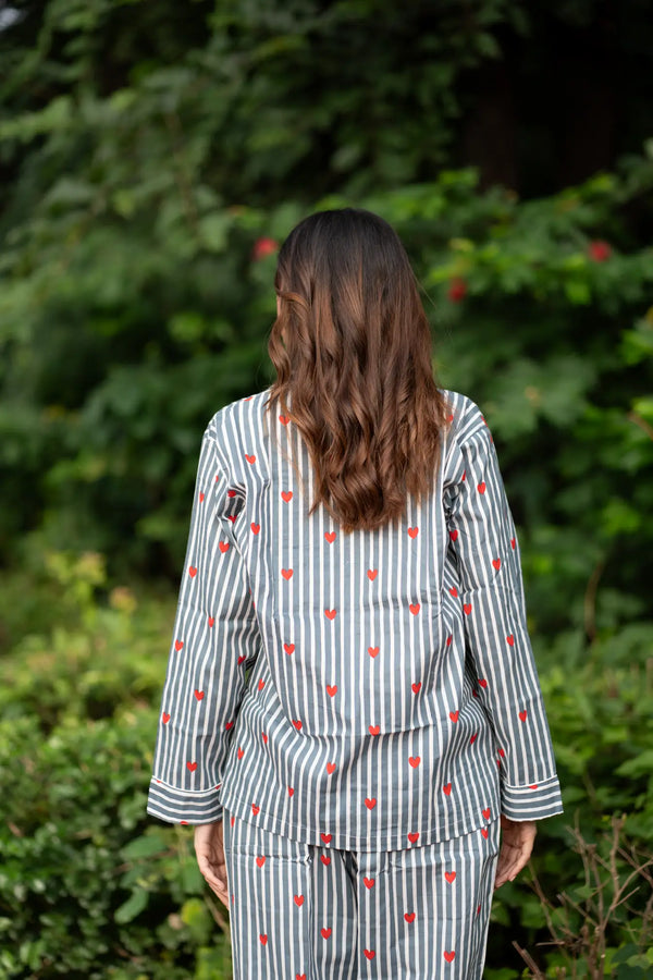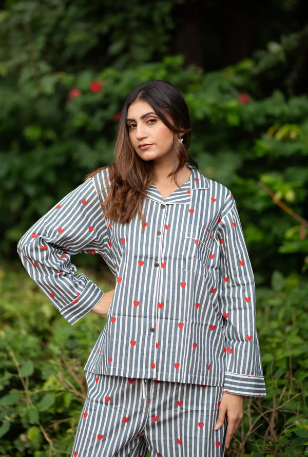 Hand Block Print Cotton PJ Set for Women Soft Lightweight Sleepwear, Breathable Floral Loungewear with Pockets, Boho Holiday Co-Ord Set