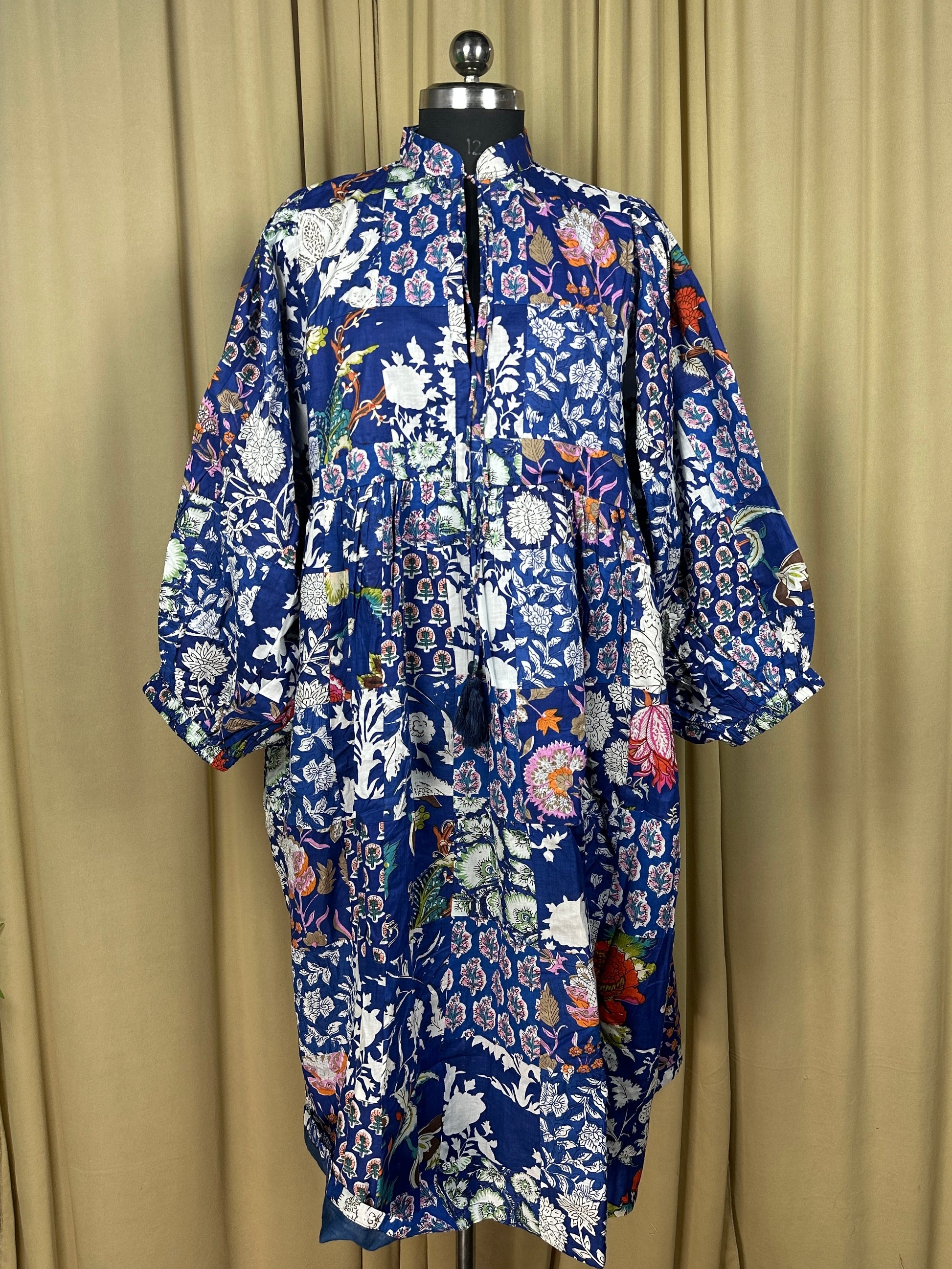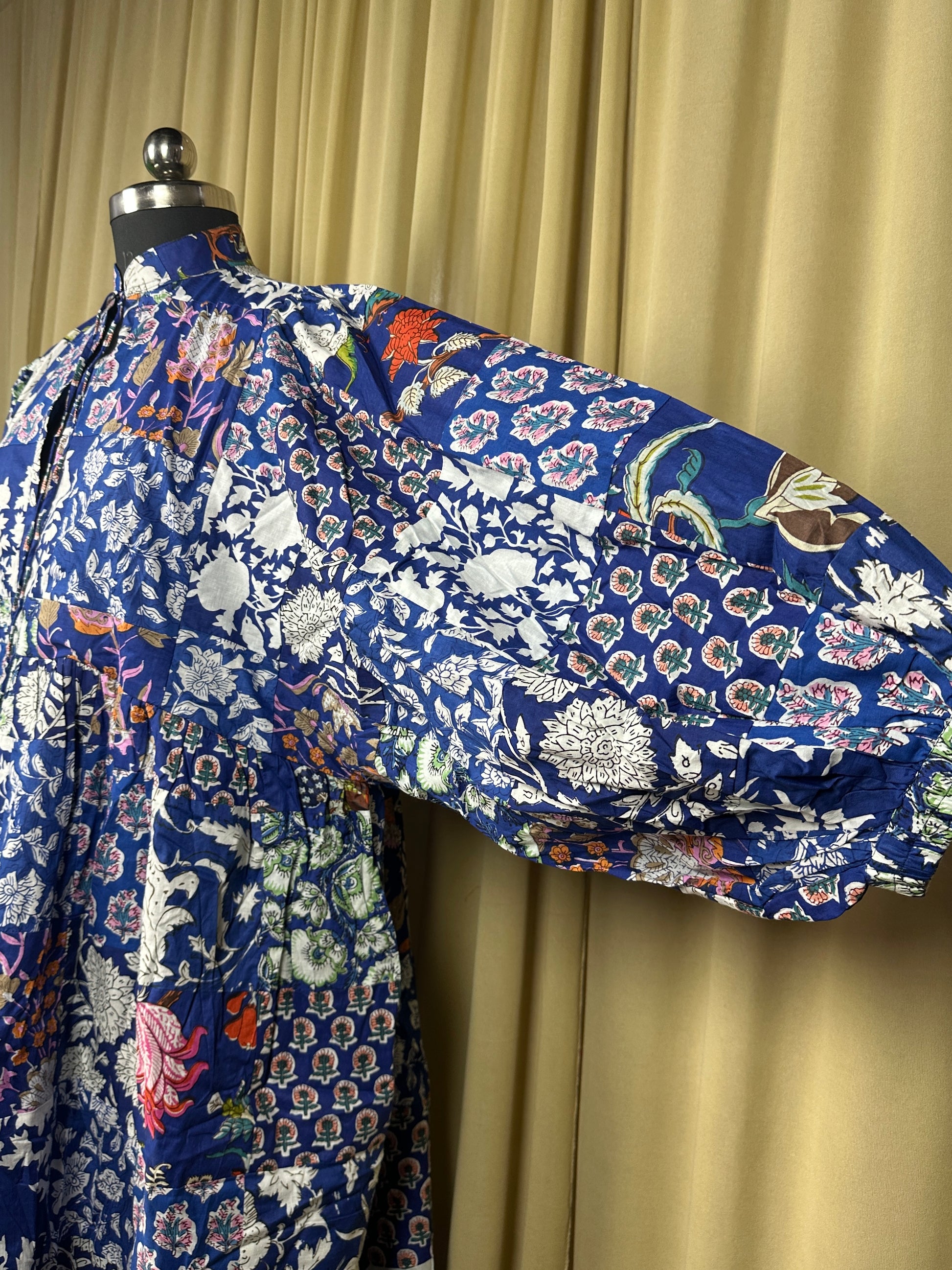 Patchwork-Kleid aus reiner Baumwolle mit Handblockdruck.