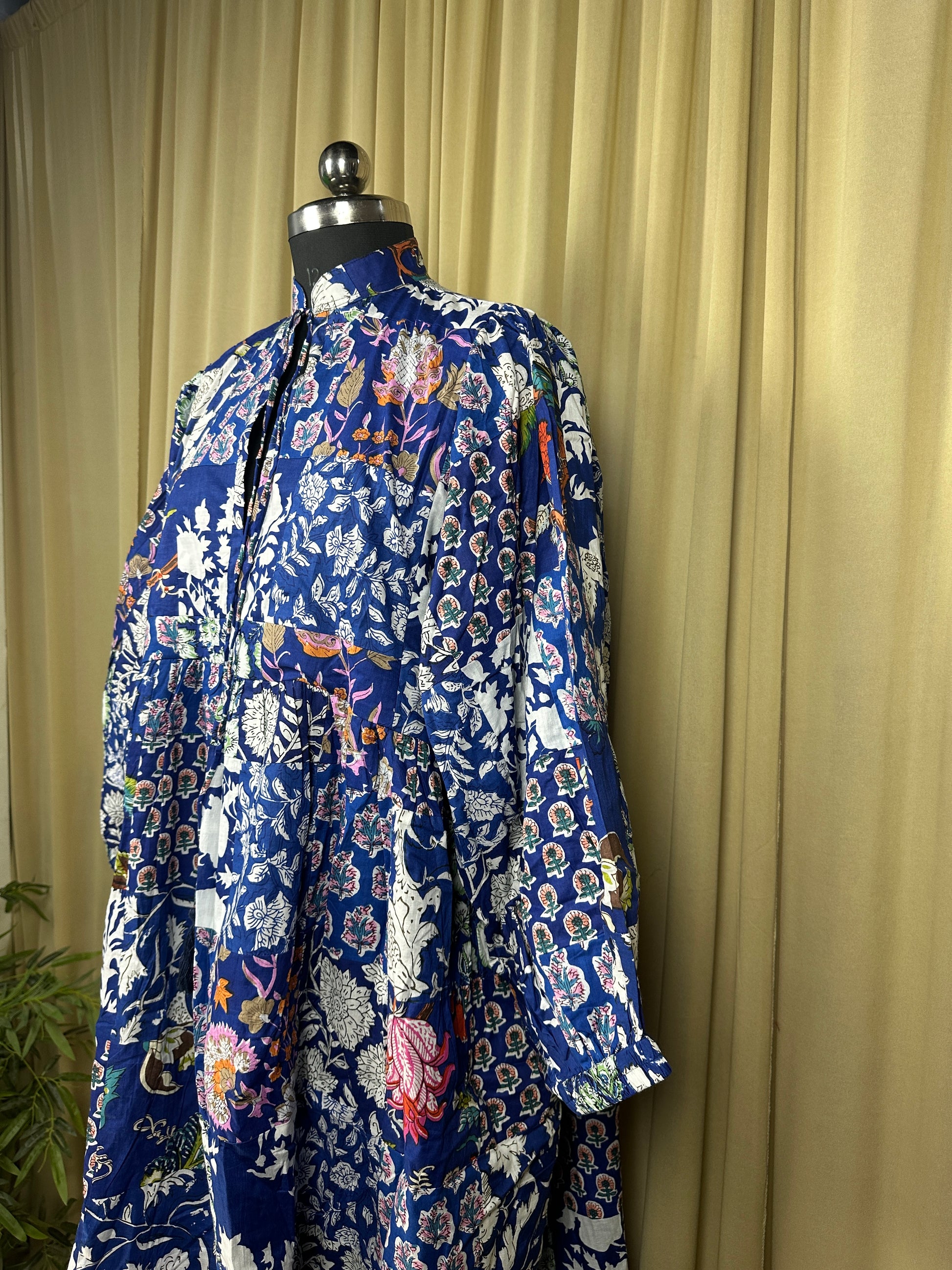 SORTIMENT – BLAUE FARBTÖNE | Handgenähtes Patchwork-Kleid aus Baumwolle | Perfektes Weihnachtsgeschenk zum Jahrestag für ihre Schwester und Mutter |