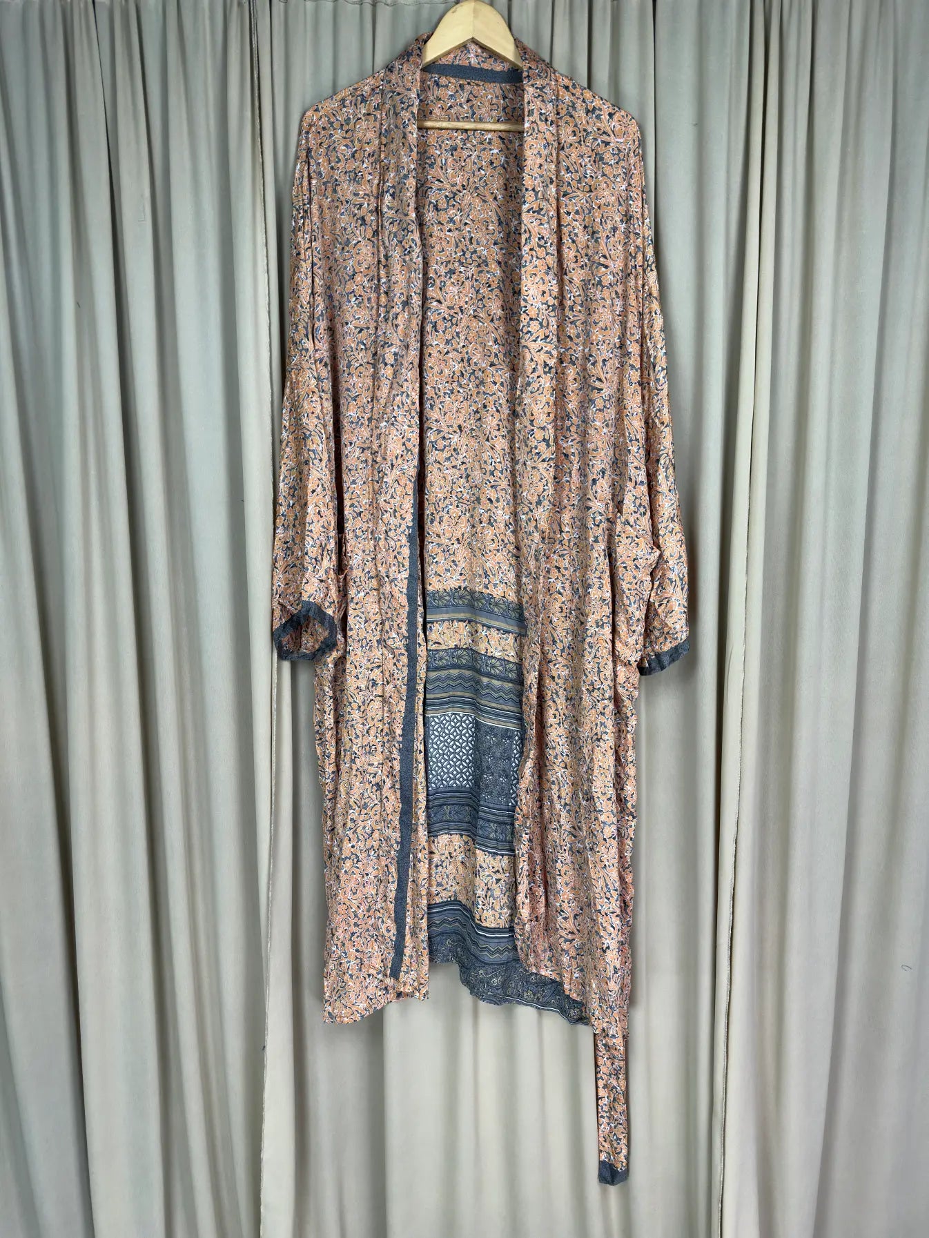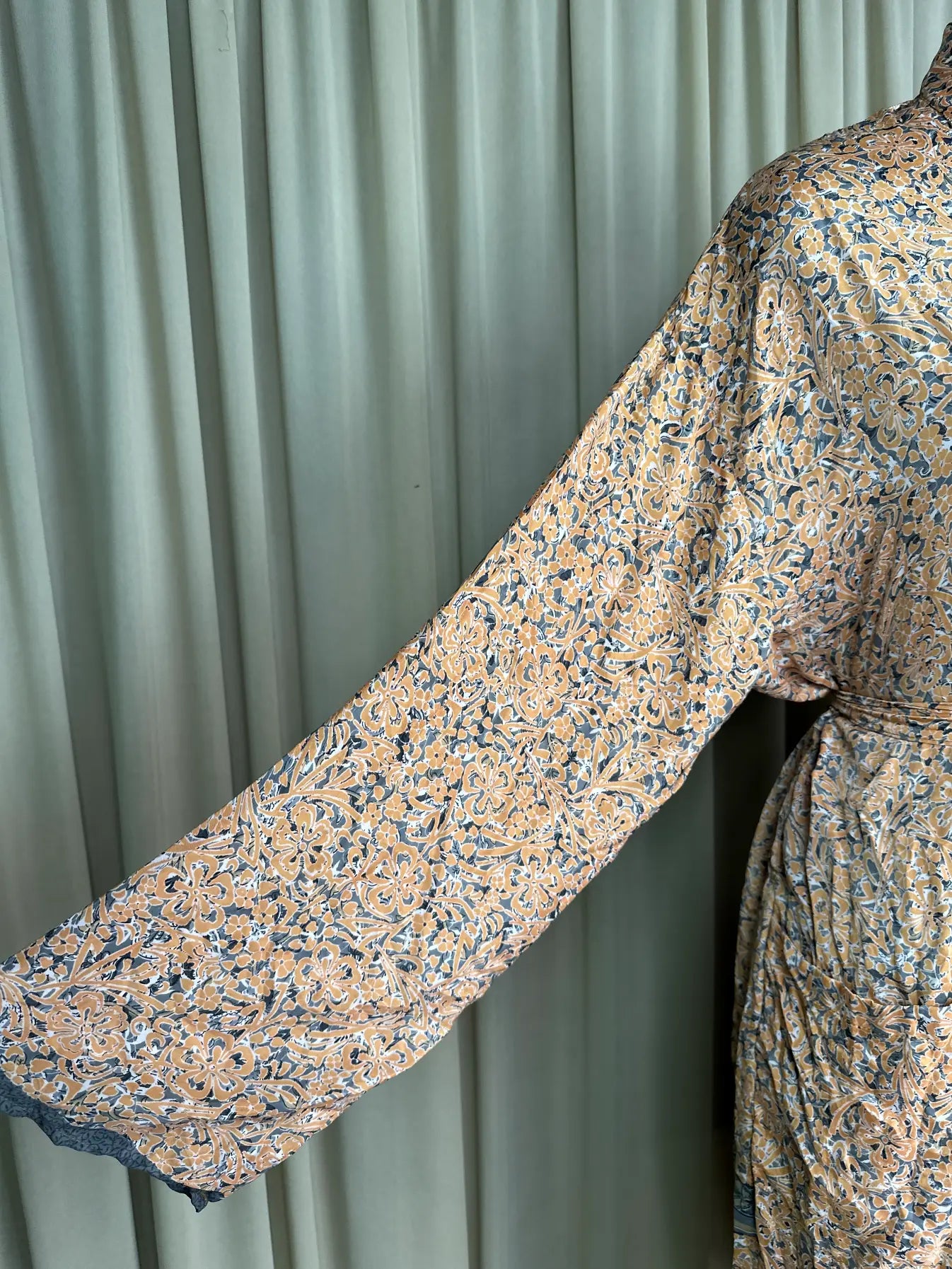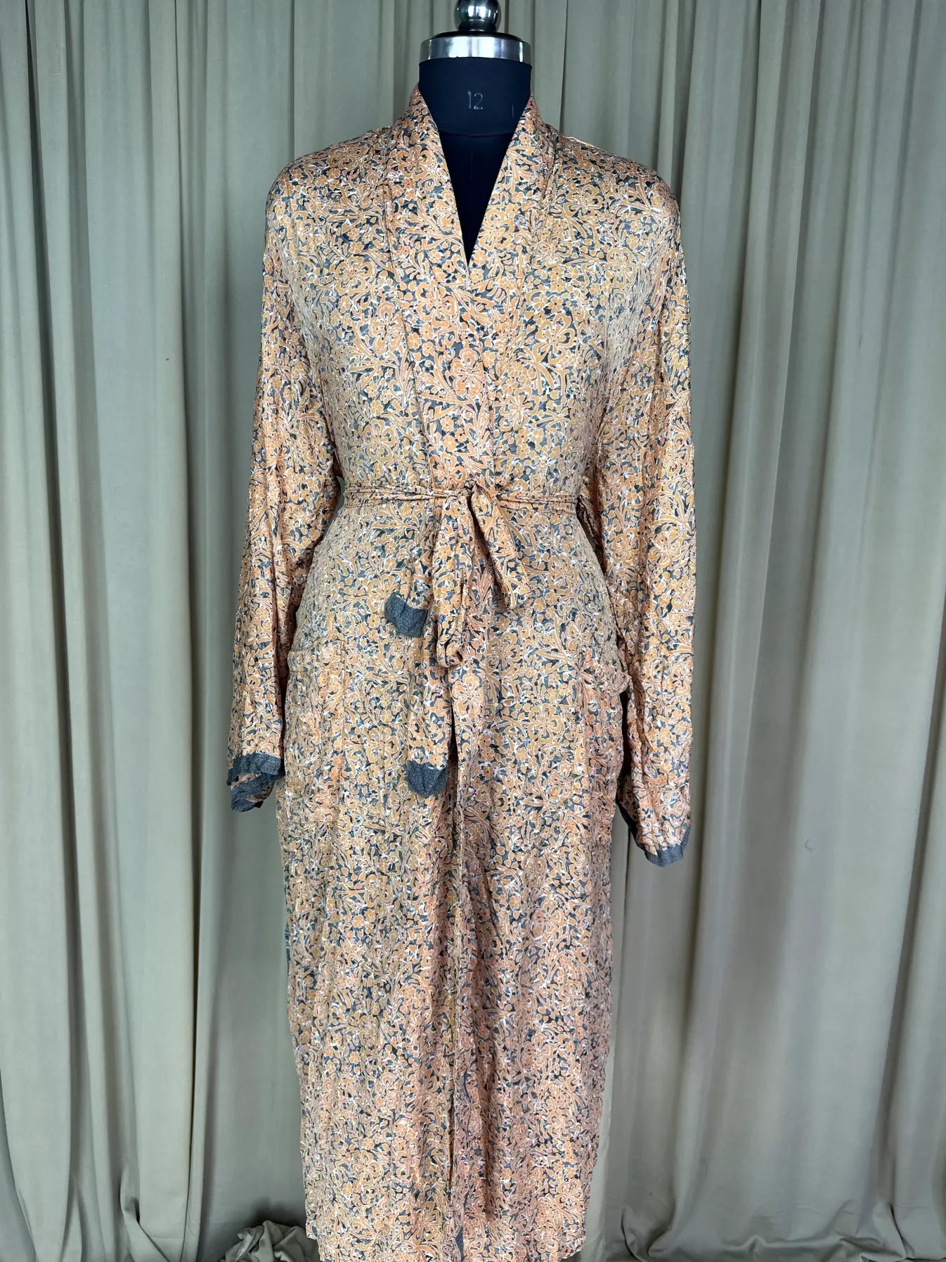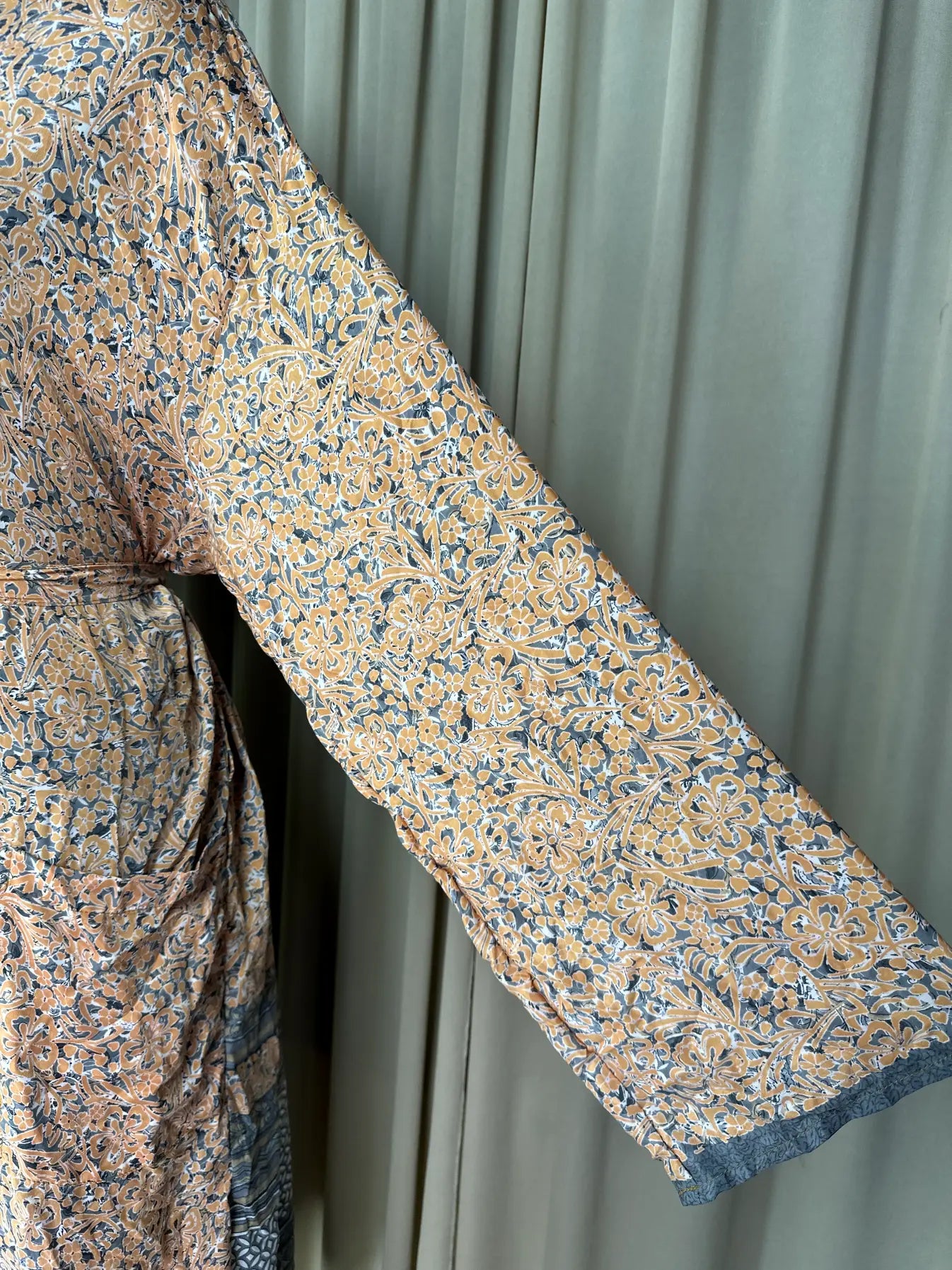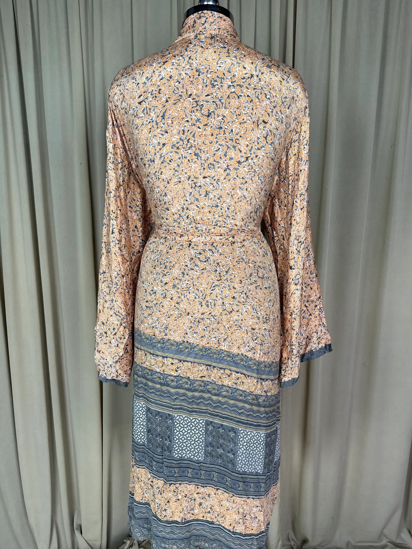 Created with the finest attention to detail, this robe is a symbol of timeless elegance and sophistication. Made from the upcycled silk sari, it offers a sumptuous soft feel against your skin, enveloping you in pure comfort and indulgence.