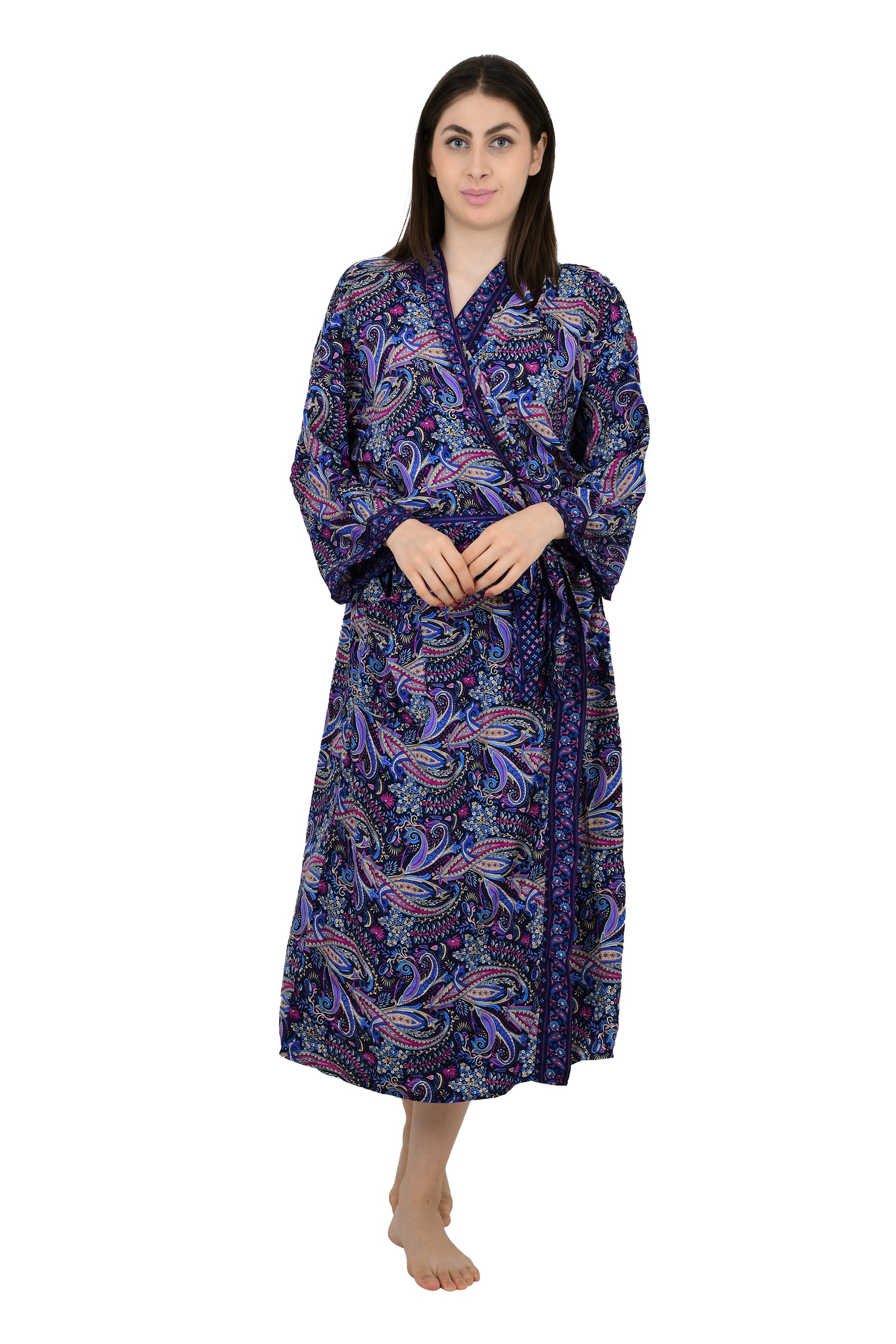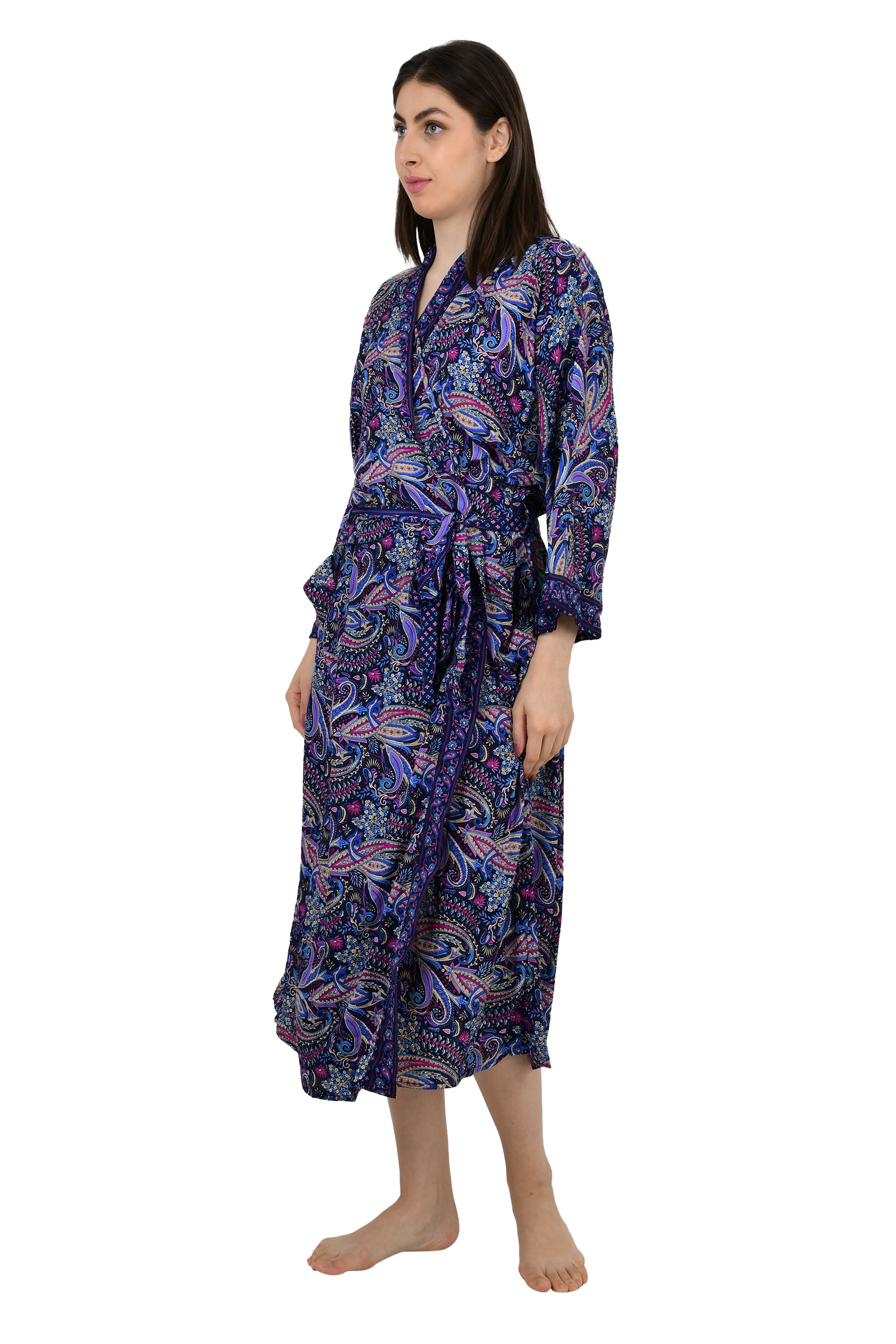 Silk Blend Kimono Robe: Floral Print Long Dressing Gown
