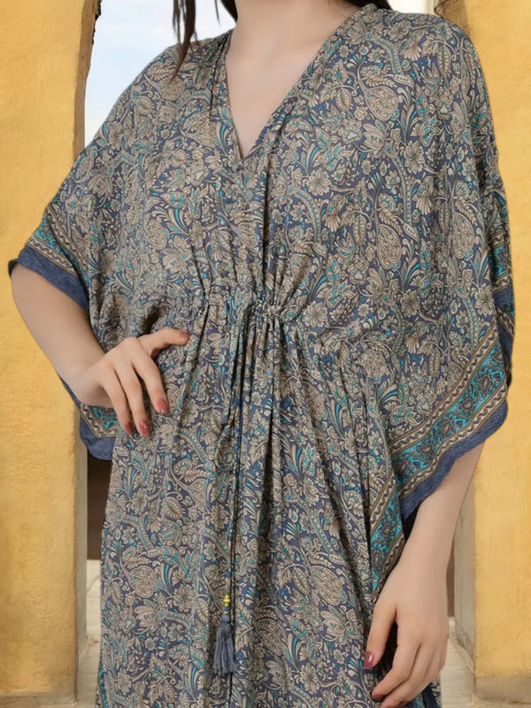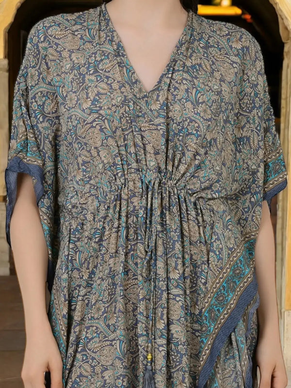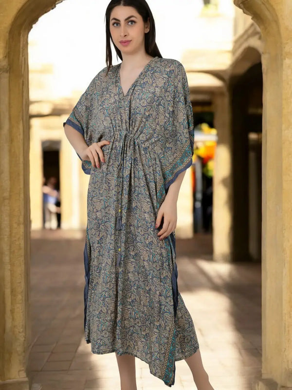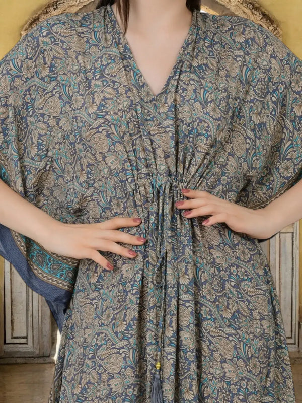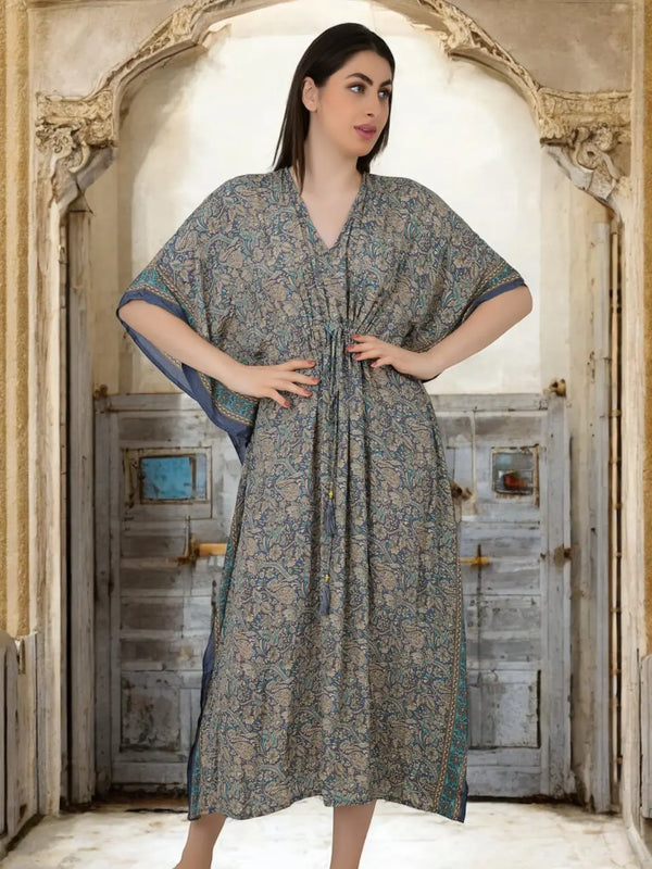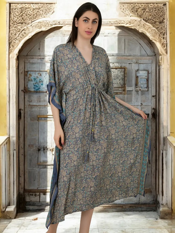 Silk Long Kaftan | Soft Amber Floral #1628