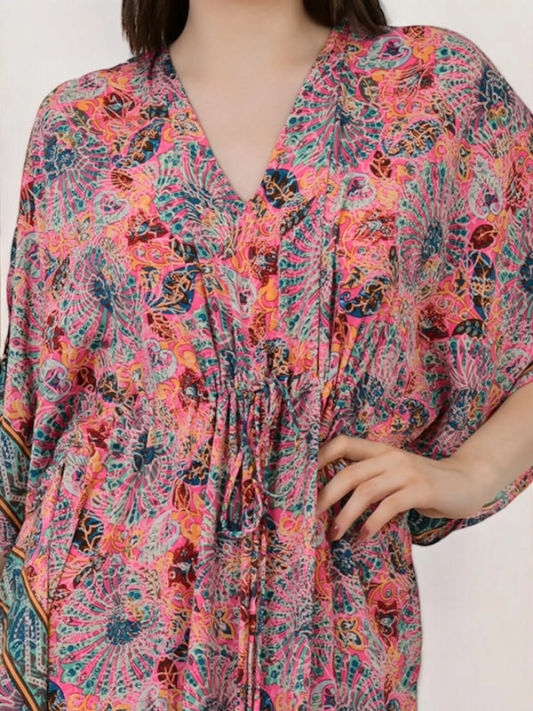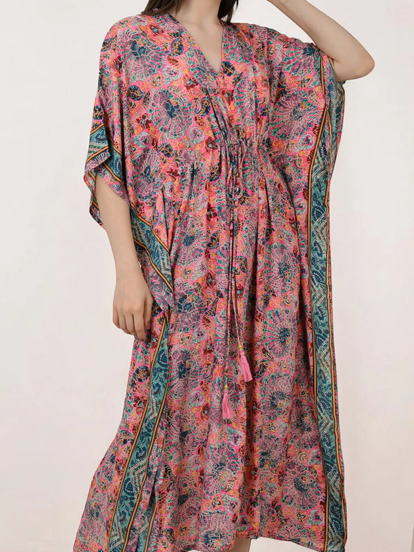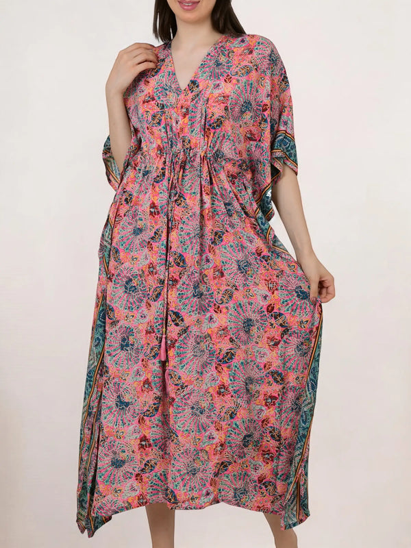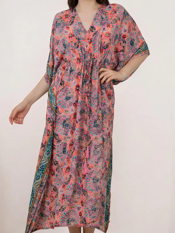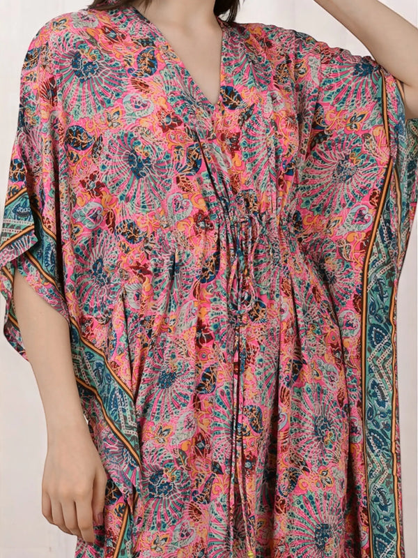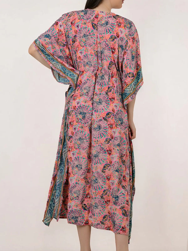 Women's Silk Blend Long Kaftan, Boho Chic Summer Dressing Gown, Boheme Beach Coverup, Loose Fit Maxi Dress, Luxury Lounge Wear, Gift for Her