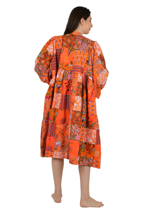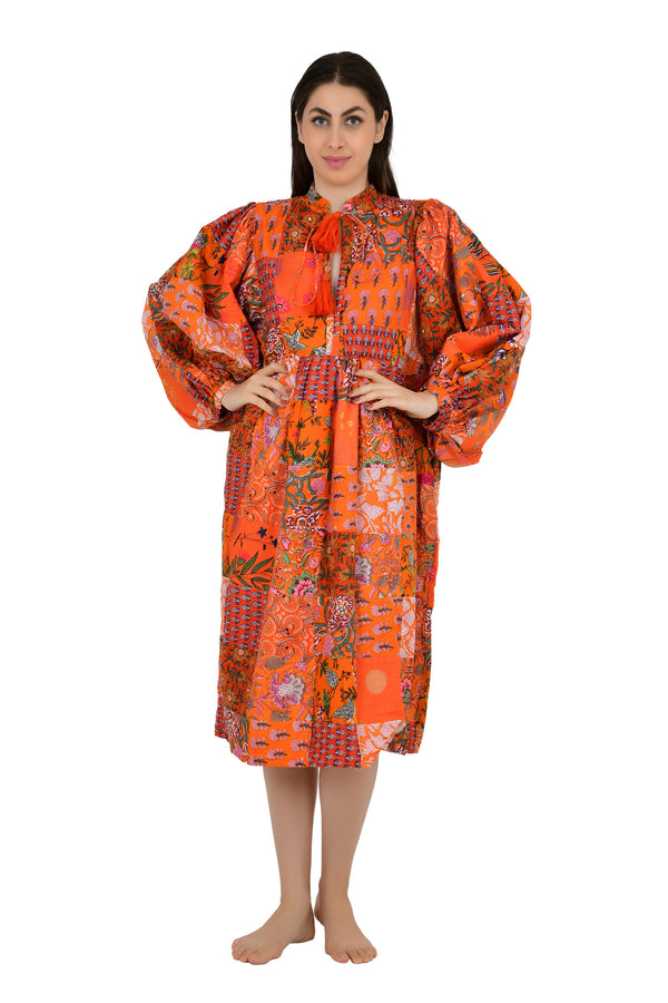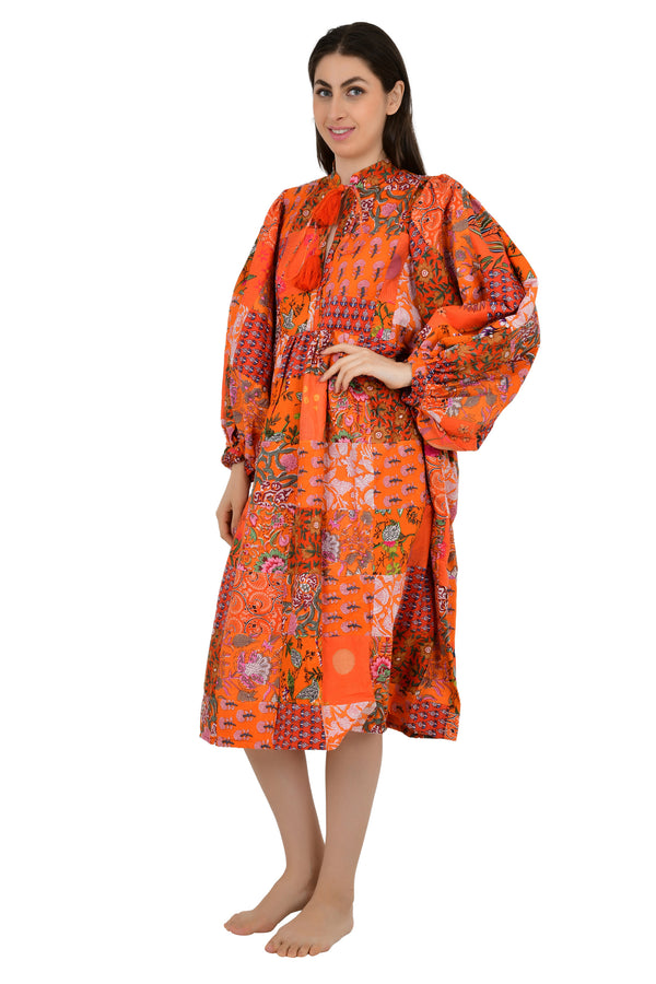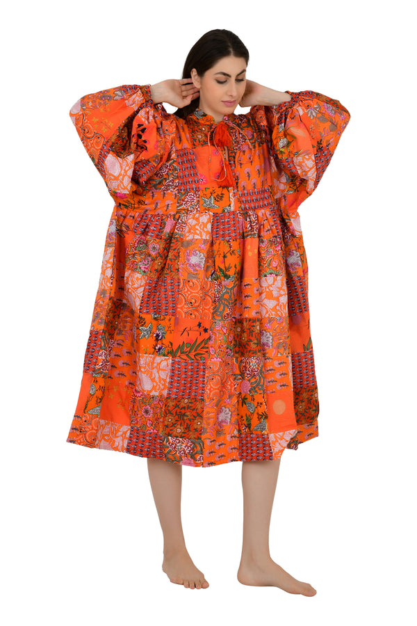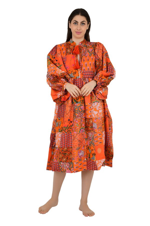 Pure Cotton Patchwork Dress with Hand Block printing.