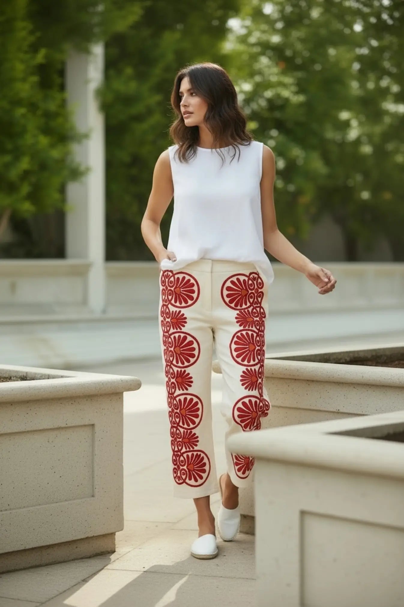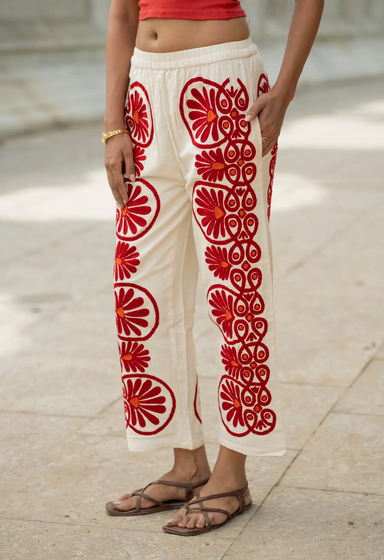 Whether you’re dressing up for a casual outing or relaxing at home, these embroidered cotton pants bring a unique blend of craftsmanship, comfort, and conscious fashion — making them a thoughtful gift for yourself or someone special.