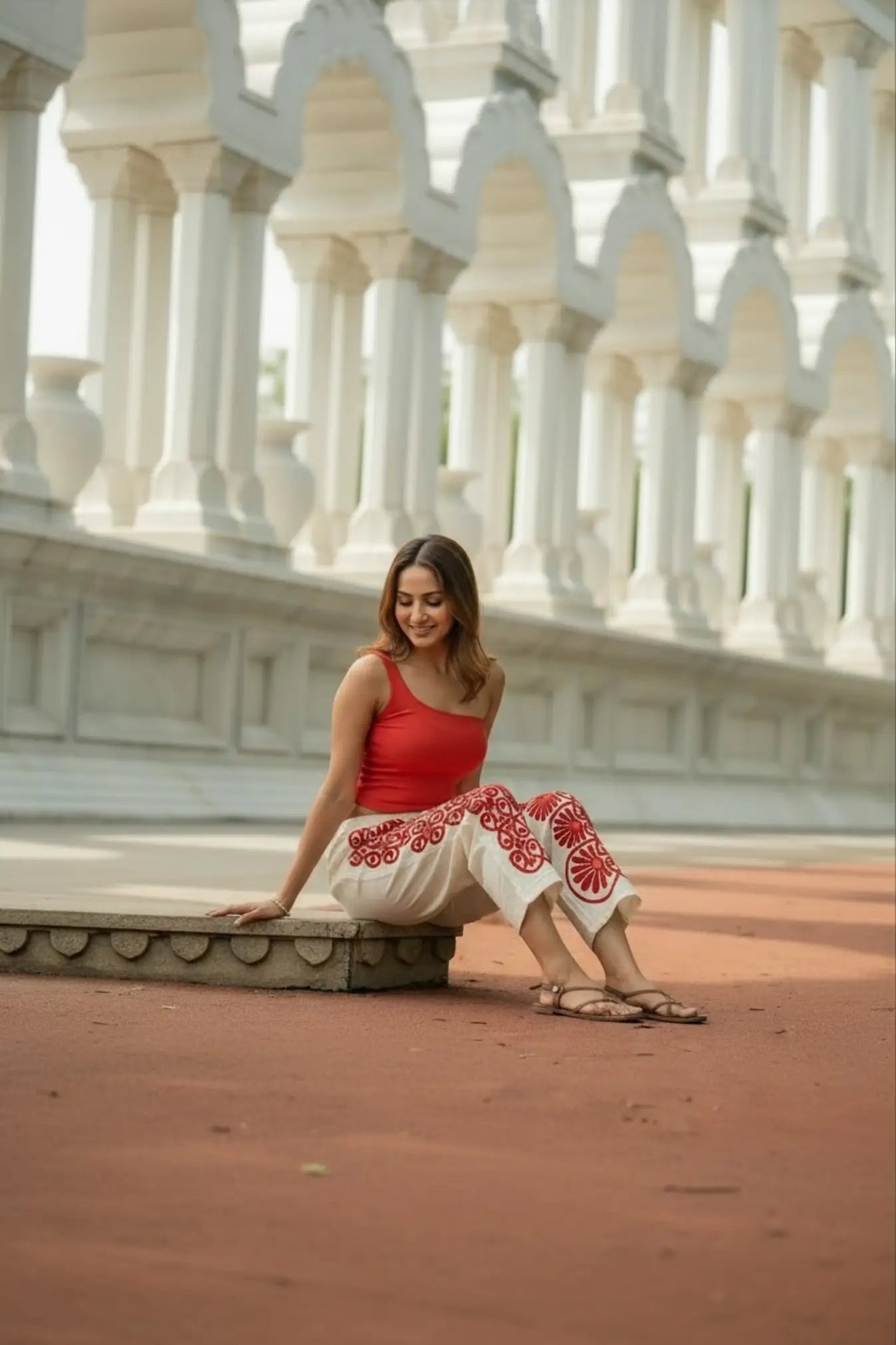 Artisan Craftsmanship: Each pant is meticulously hand-embroidered using the traditional Suzani technique, where every motif is stitched by hand with care and precision. The result is a one-of-a-kind piece that celebrates India’s rich textile artistry.