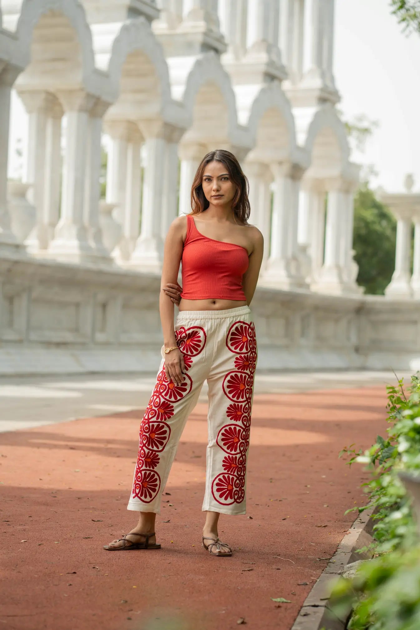 Discover the artistry and comfort of traditional Indian embroidery with our Cotton Suzani Embroidery Pant, a perfect fusion of heritage design and modern ease. Handcrafted by skilled female artisans in India, each pant showcases the intricate beauty of Suzani embroidery — a centuries-old decorative art known for its bold patterns, vibrant threads, and cultural symbolism. Designed for effortless style and comfort, these pants are ideal for lounging, travel, or adding a touch of bohemian elegance to your everyday wardrobe.