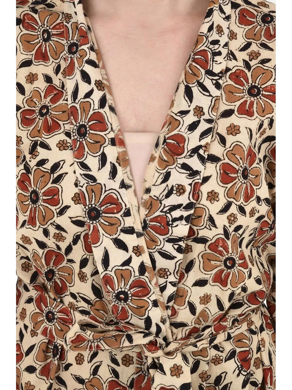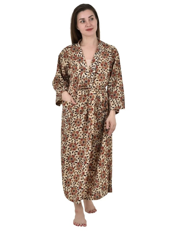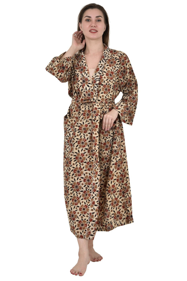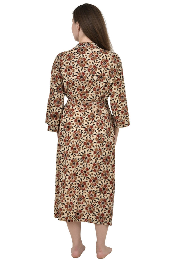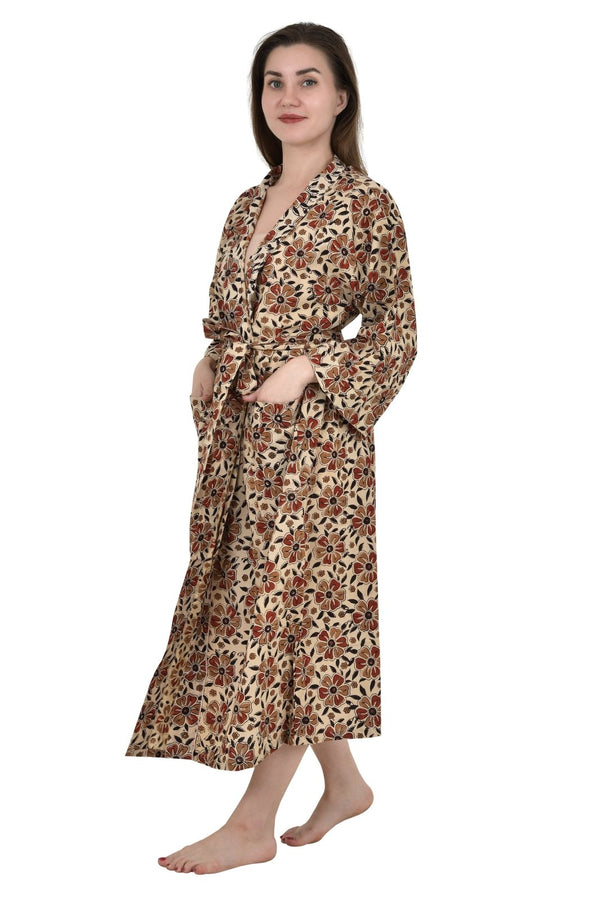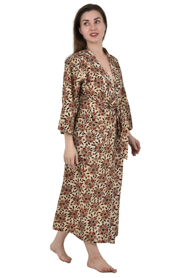 Kimono en coton pur indien imprimé à la main Boho House Robe Robe d’été | Beige Noir Rouge Floral Jonquilles Luxe Cover Up, Maternité Maman Mariée