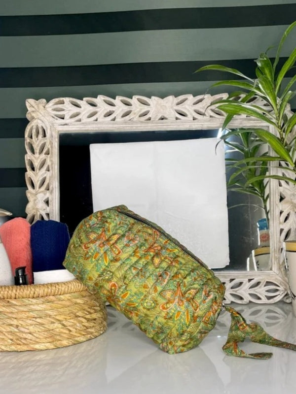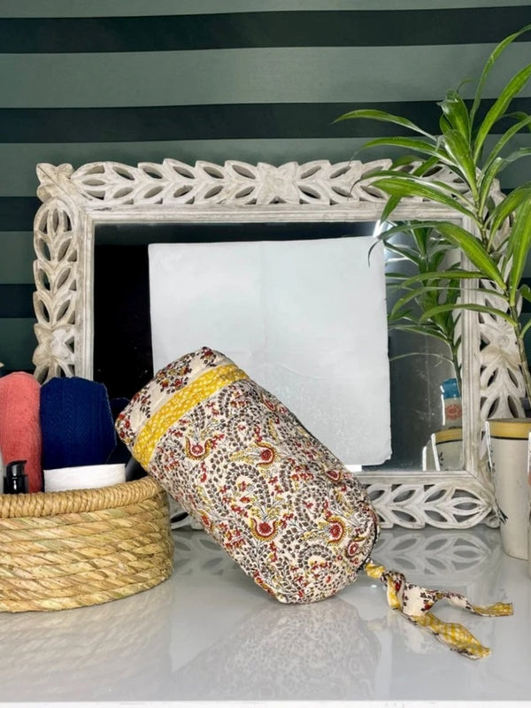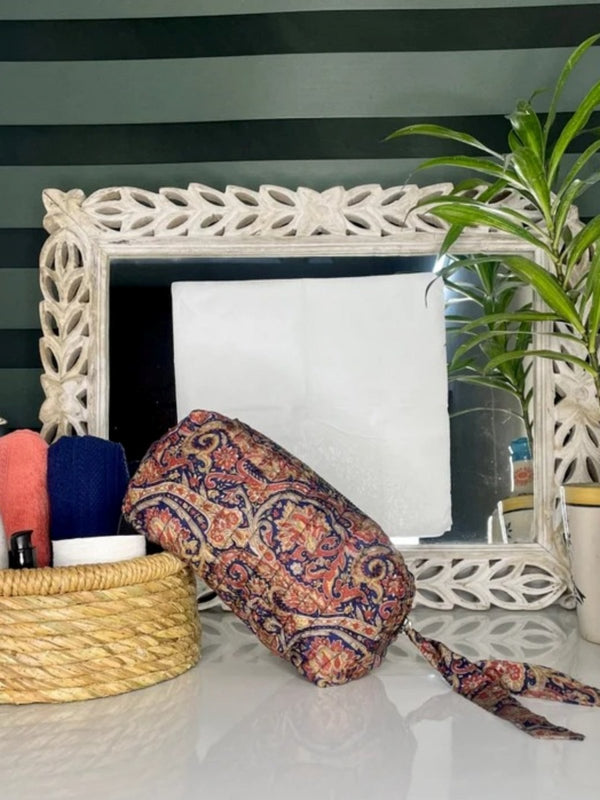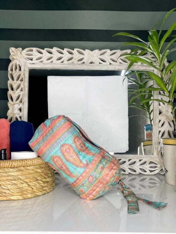 Assorted Set of 3 Silk Floral Persian Paisley Hand Block Print Toiletry | Travel | Make Up / Cosmetic | Wash Bag | Shaving Kit | Vanity Case