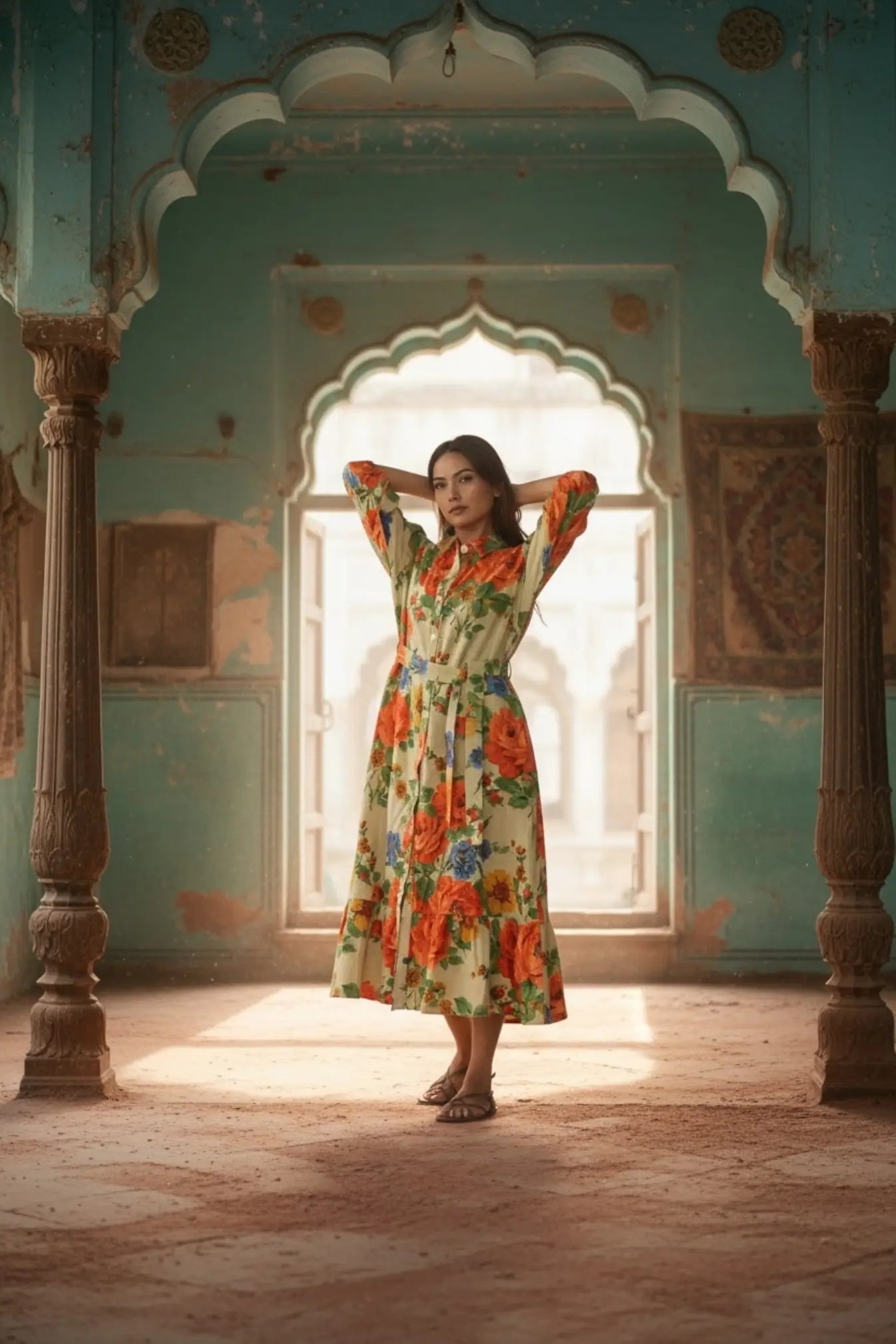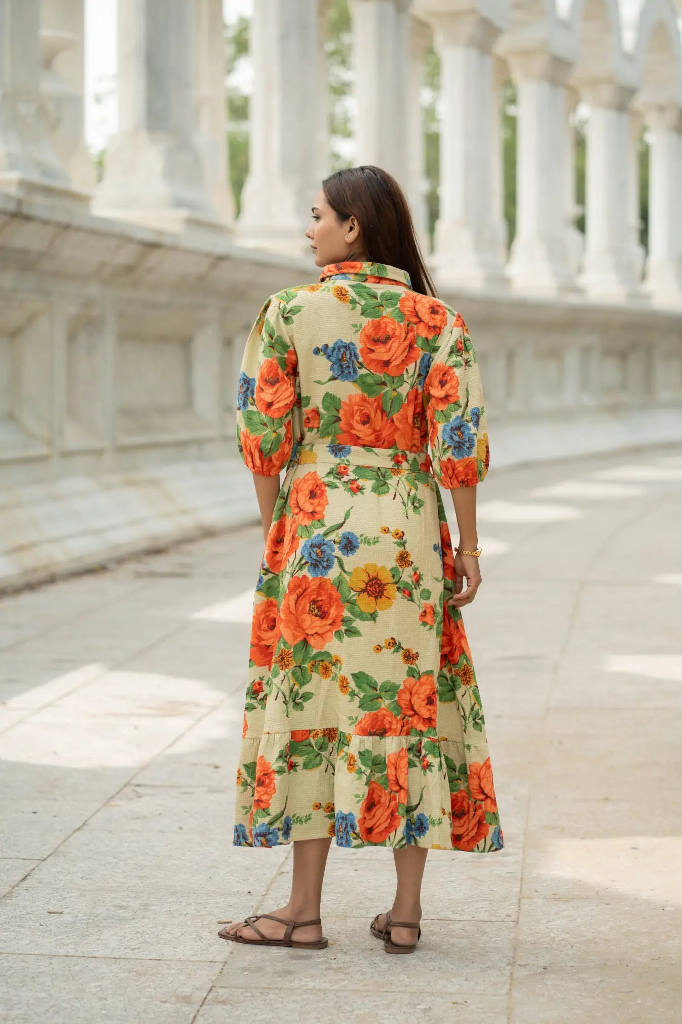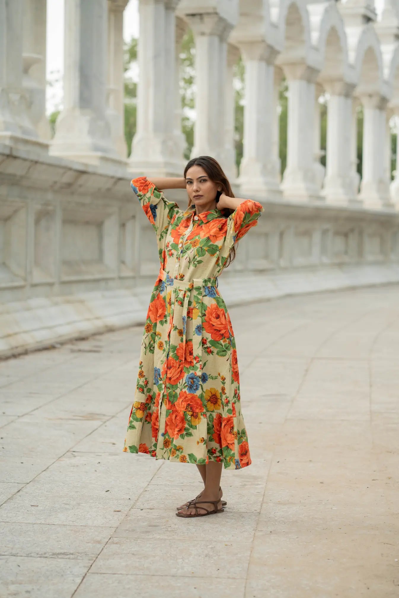 The design works beautifully as a cotton dress, summer dress, midi dress, mini dress, long dress, or relaxed summer tunic. Its soft color palette, earthy and colourful tones, and rose dream floral story give it an elegant yet comfy look suited for daywear, casual outings, and effortless bohemian wardrobes. Button closure detailing and functional side pockets enhance comfort and usability, while the handcrafted process reflects true ethical fashion values using friendly dyed fabric.
