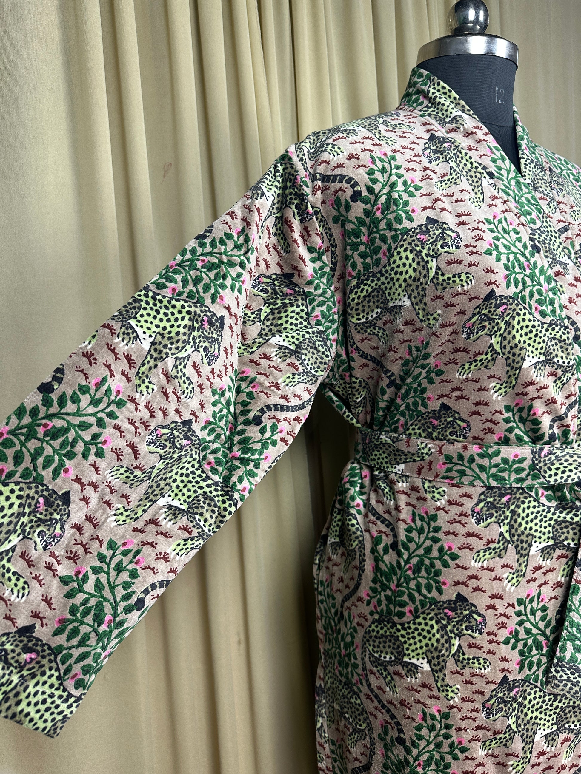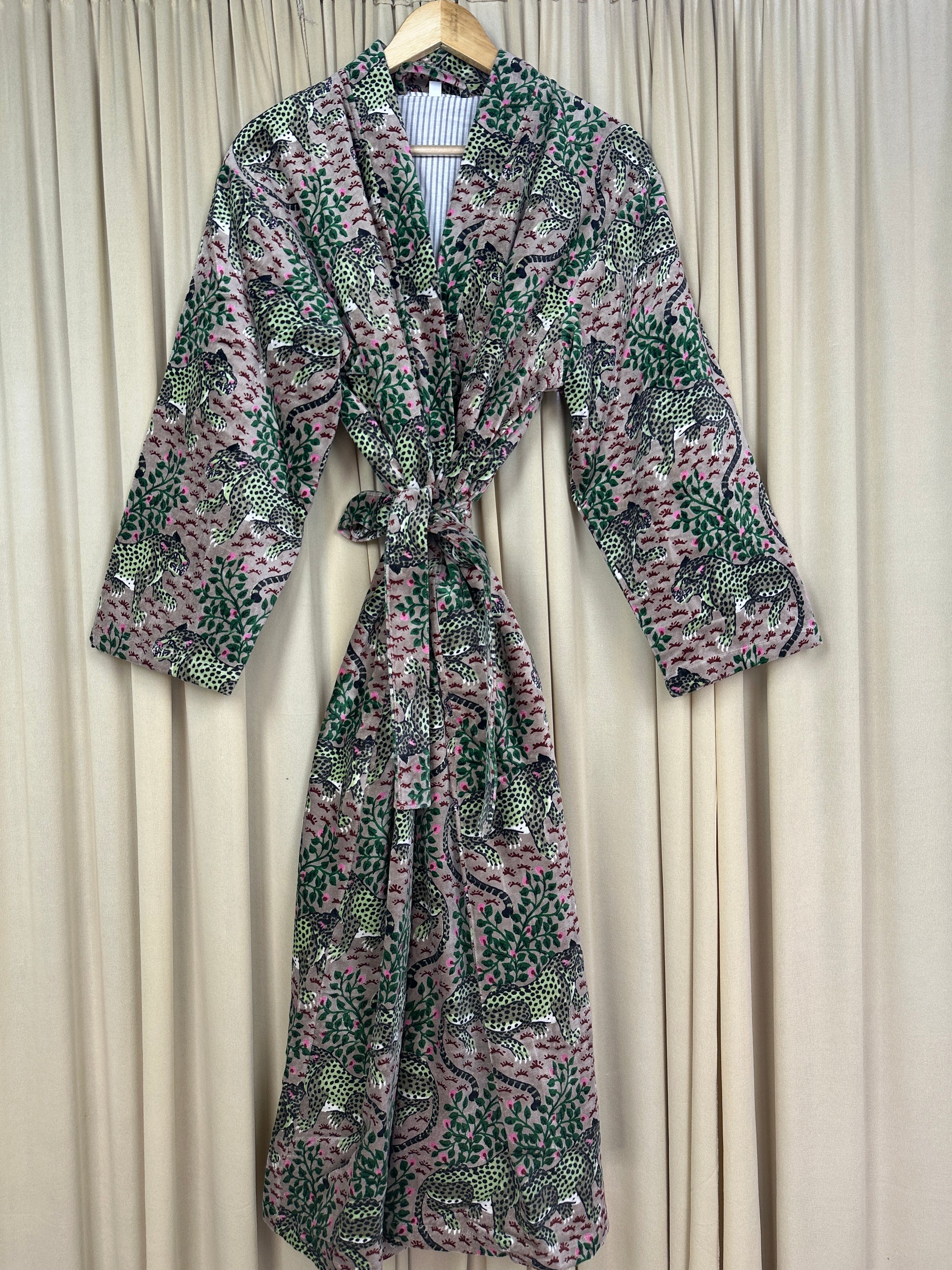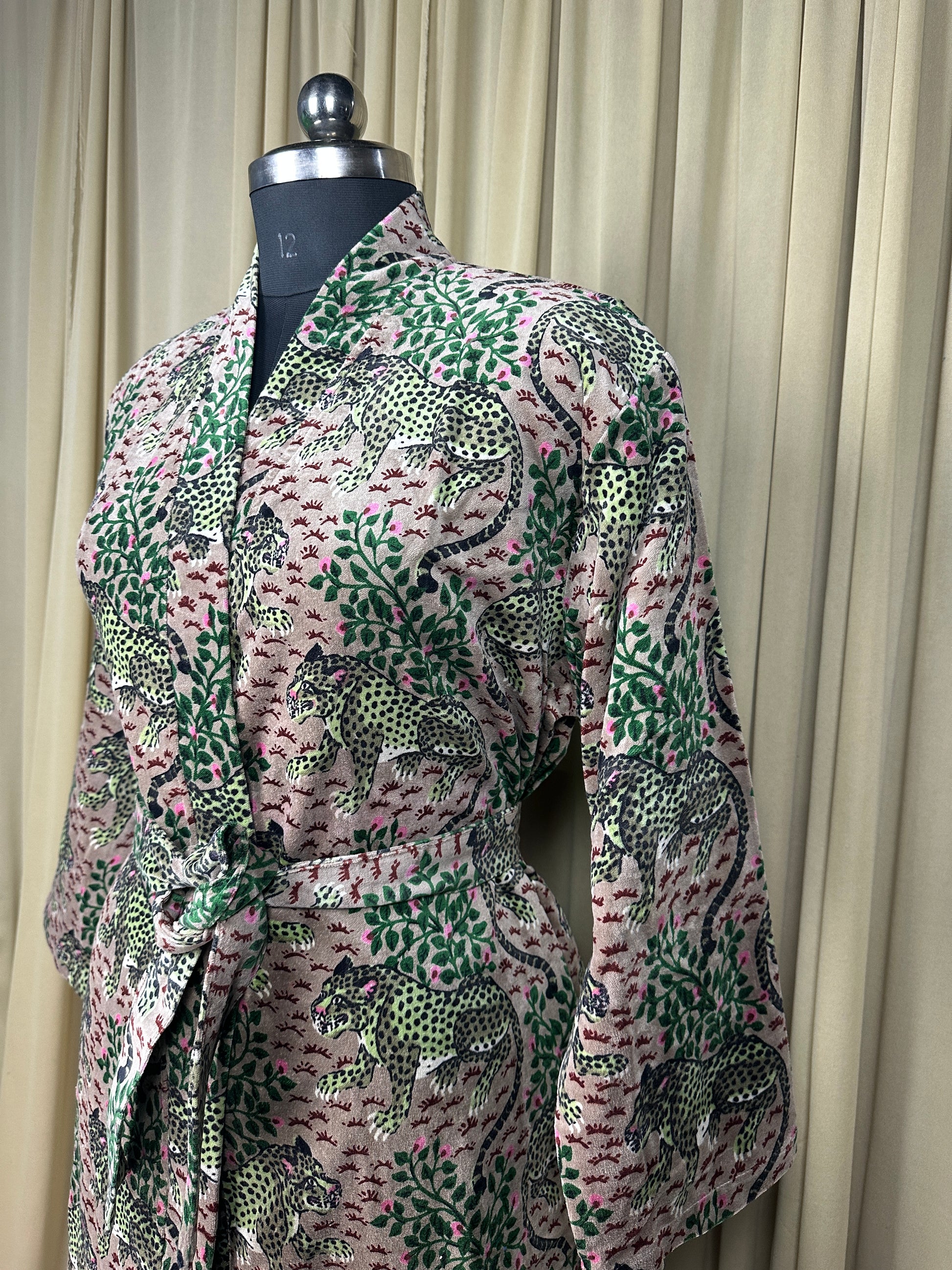 Luxury Velvet Kimono Unisex House Robe | Boho Jacket Autumn Winter Christmas Gift Elegant Reversible Cotton Lined | Quirky Gown Animal Print