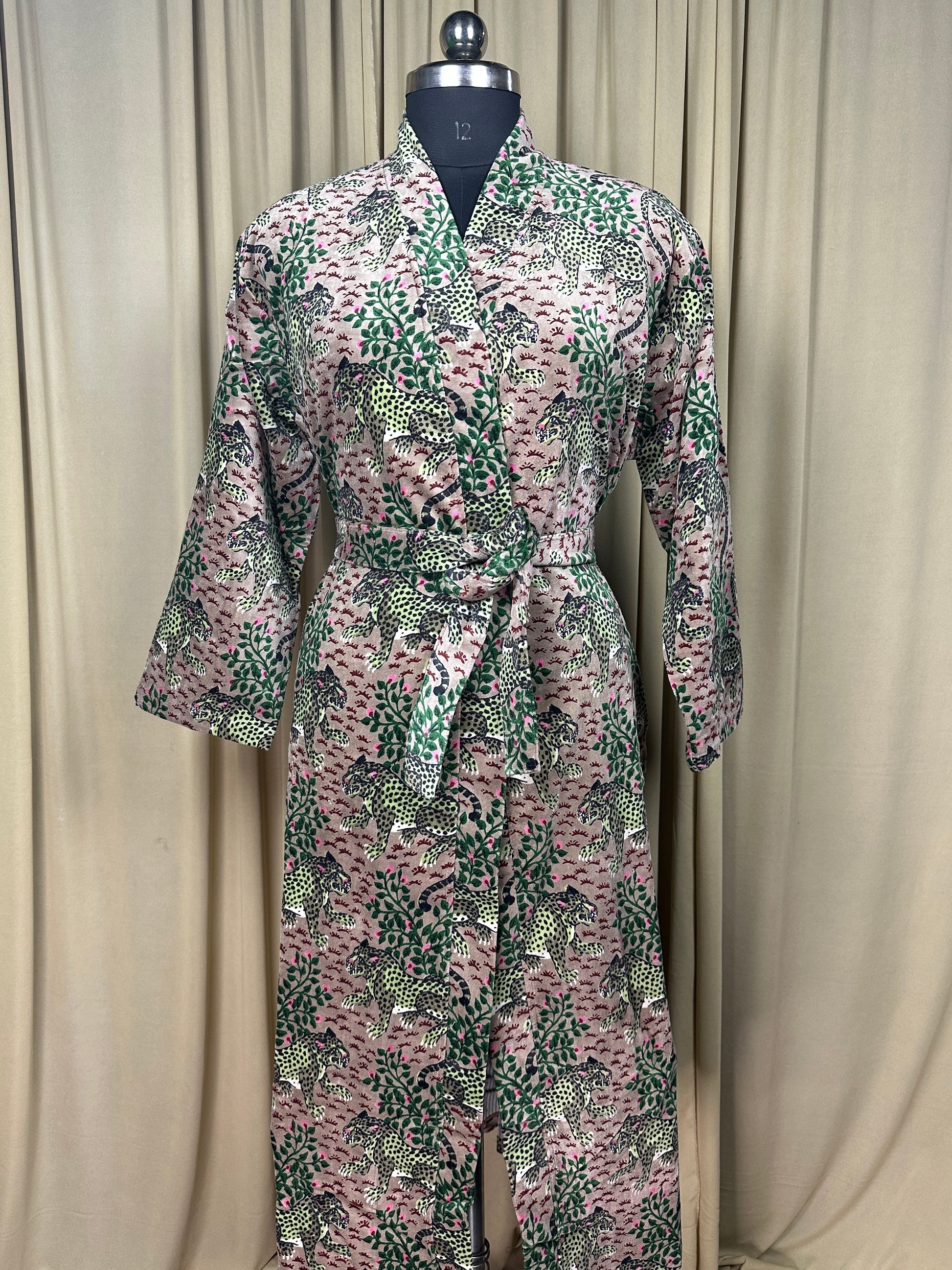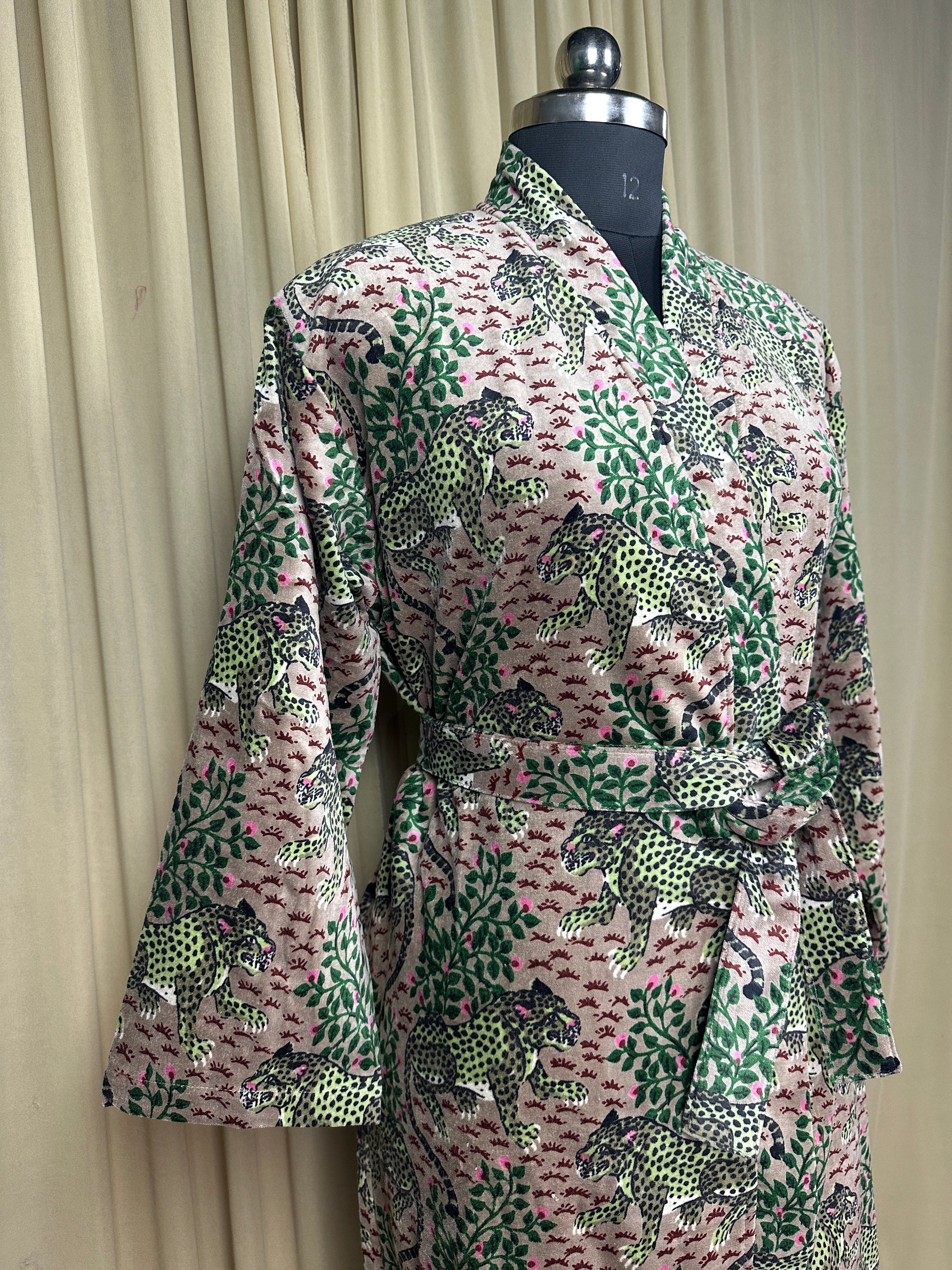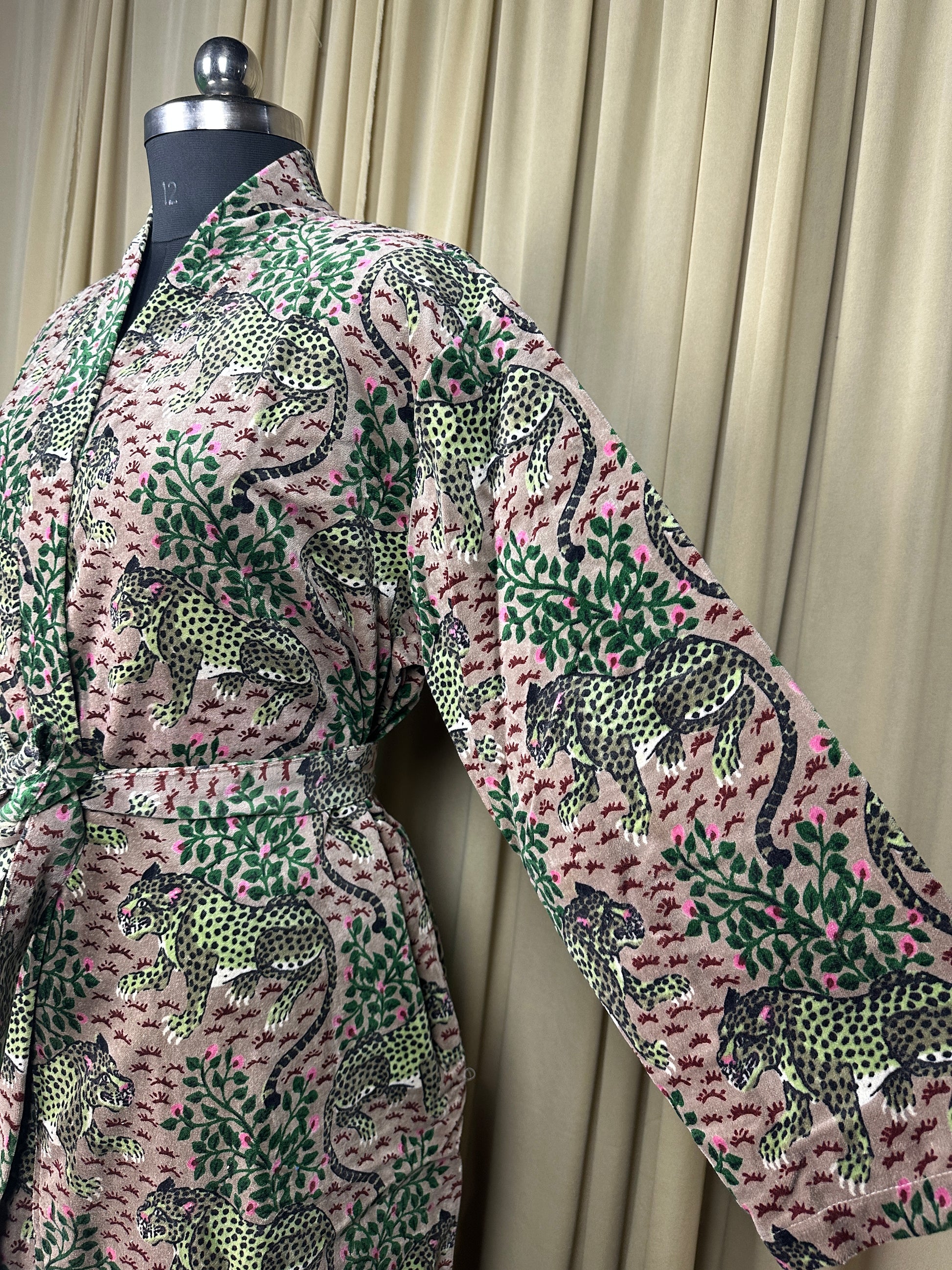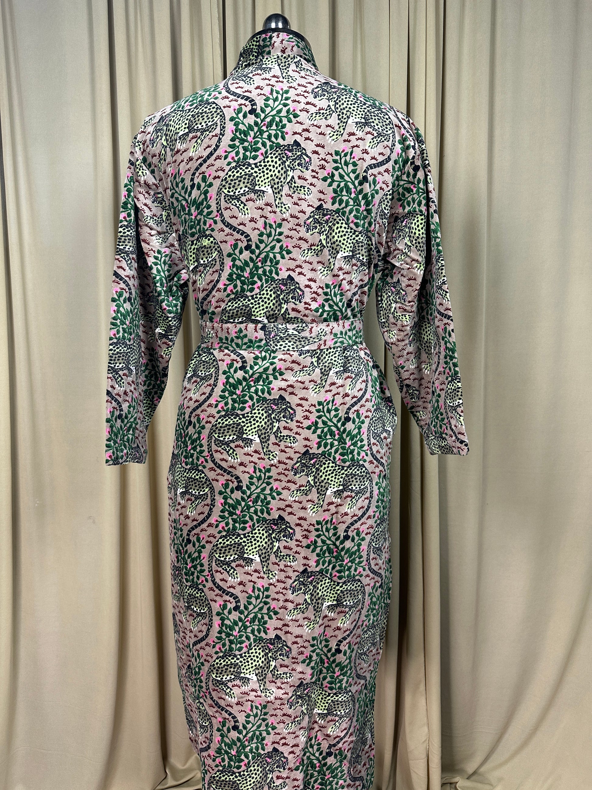 Luxury Velvet Kimono Unisex House Robe | Boho Jacket Autumn Winter Christmas Gift Elegant Reversible Cotton Lined | Quirky Gown Animal Print