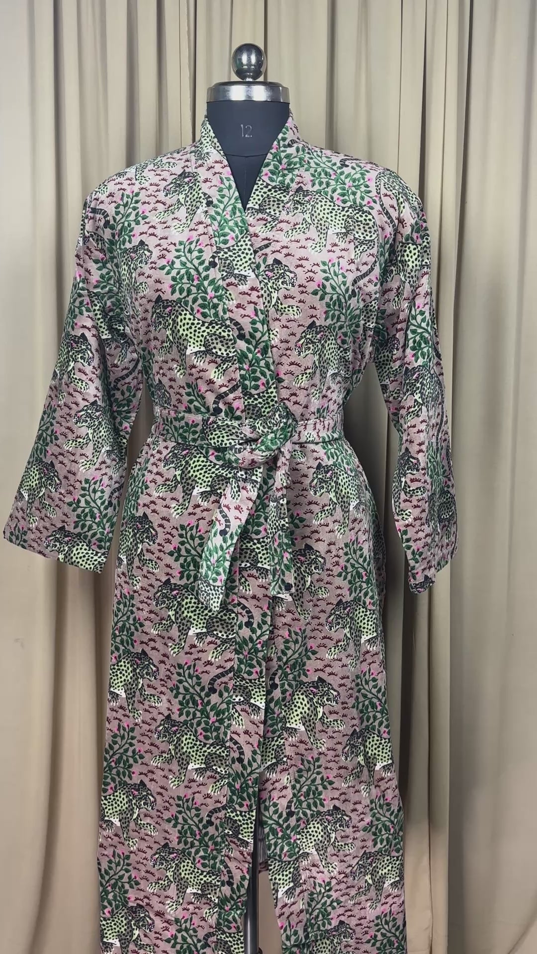 Indulge in the luscious luxury of our printed velvet robe, featuring a soft Cotton lining. With its reversible design, you can choose between the stunning outer print or the comforting feel of the lining against your skin. Perfect for autumn and winter, this dressy robe is also a great choice for unpredictable cold weather.
