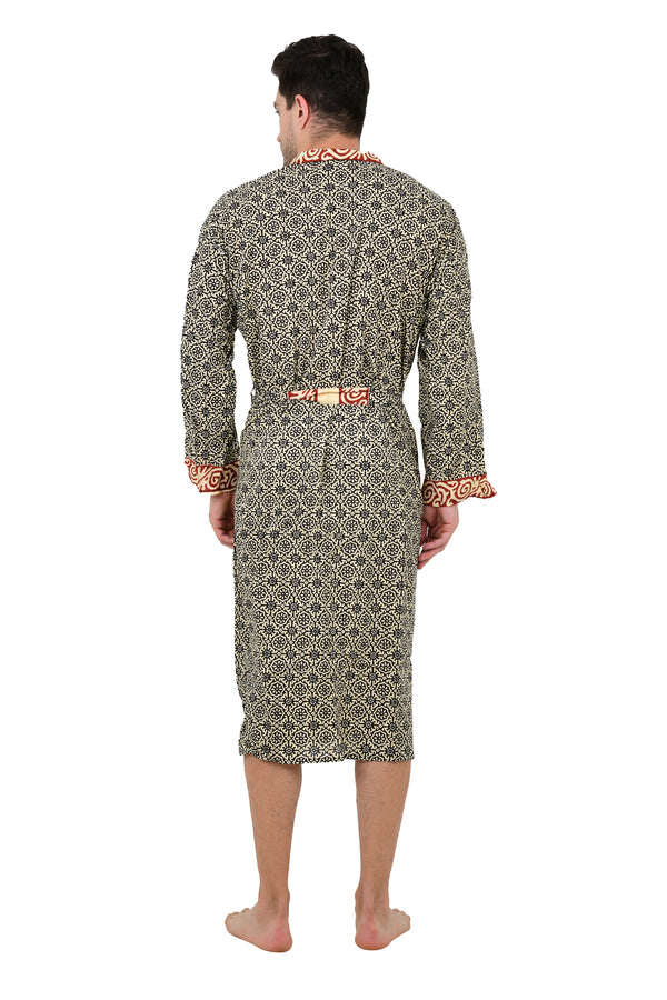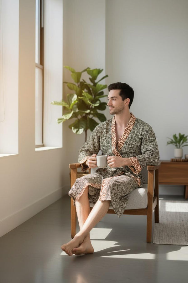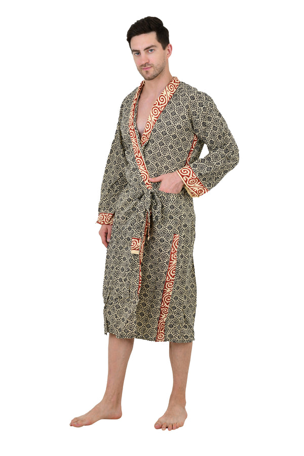 Pure Cotton Handblock Men Kimono | Indian Printed Man House Robe, Boho Beach Coverup Dressing Gown, Lightweight Loungewear, Gift For Him Dad