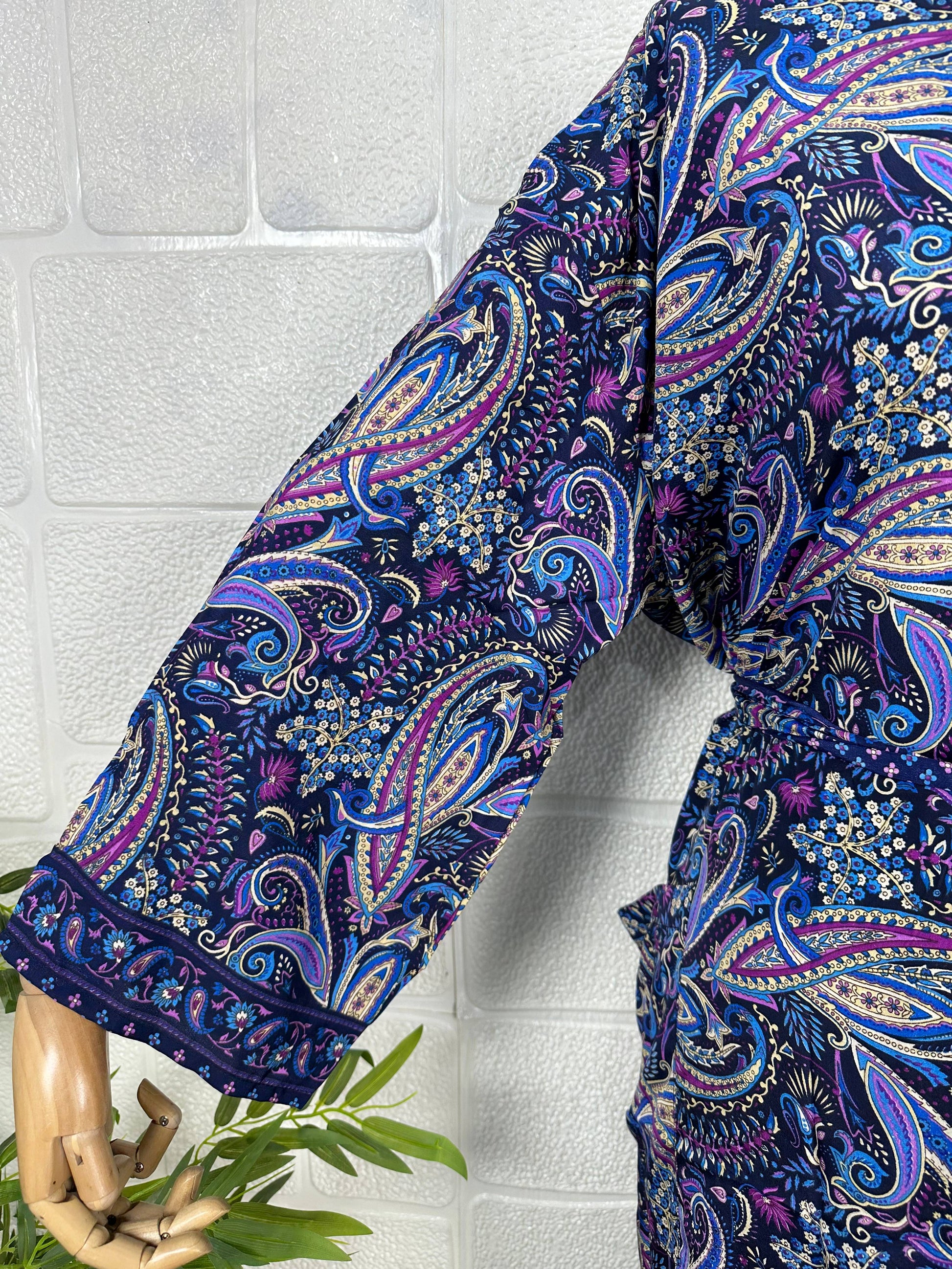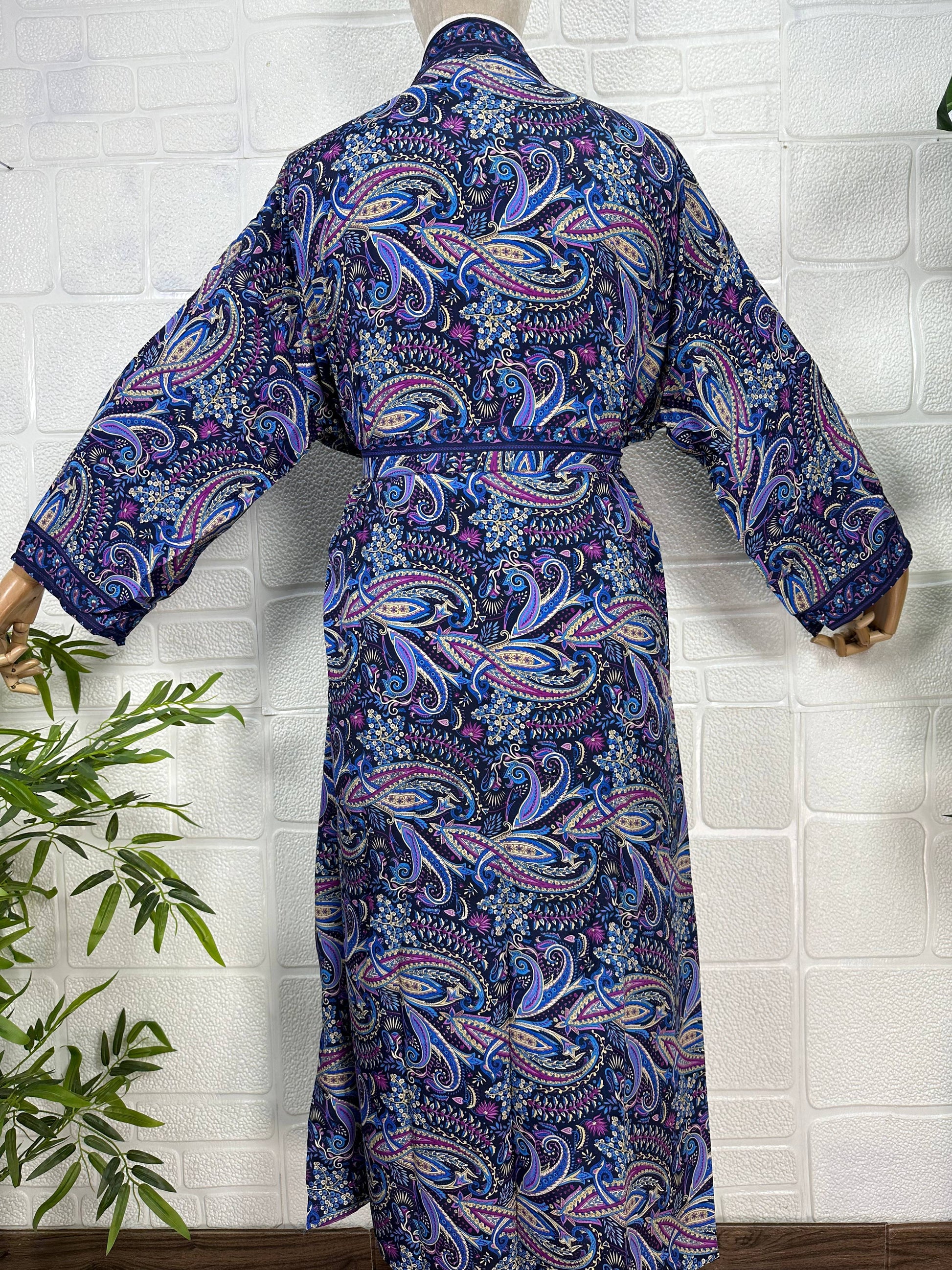 Our stunning Silk Robe is lovingly hand-stitched by talented local artisans in India. Crafted in small batches using an incredibly soft silk sari blend fabric, this robe is a testament to the craftsmanship of our wonderful team in Jaipur.