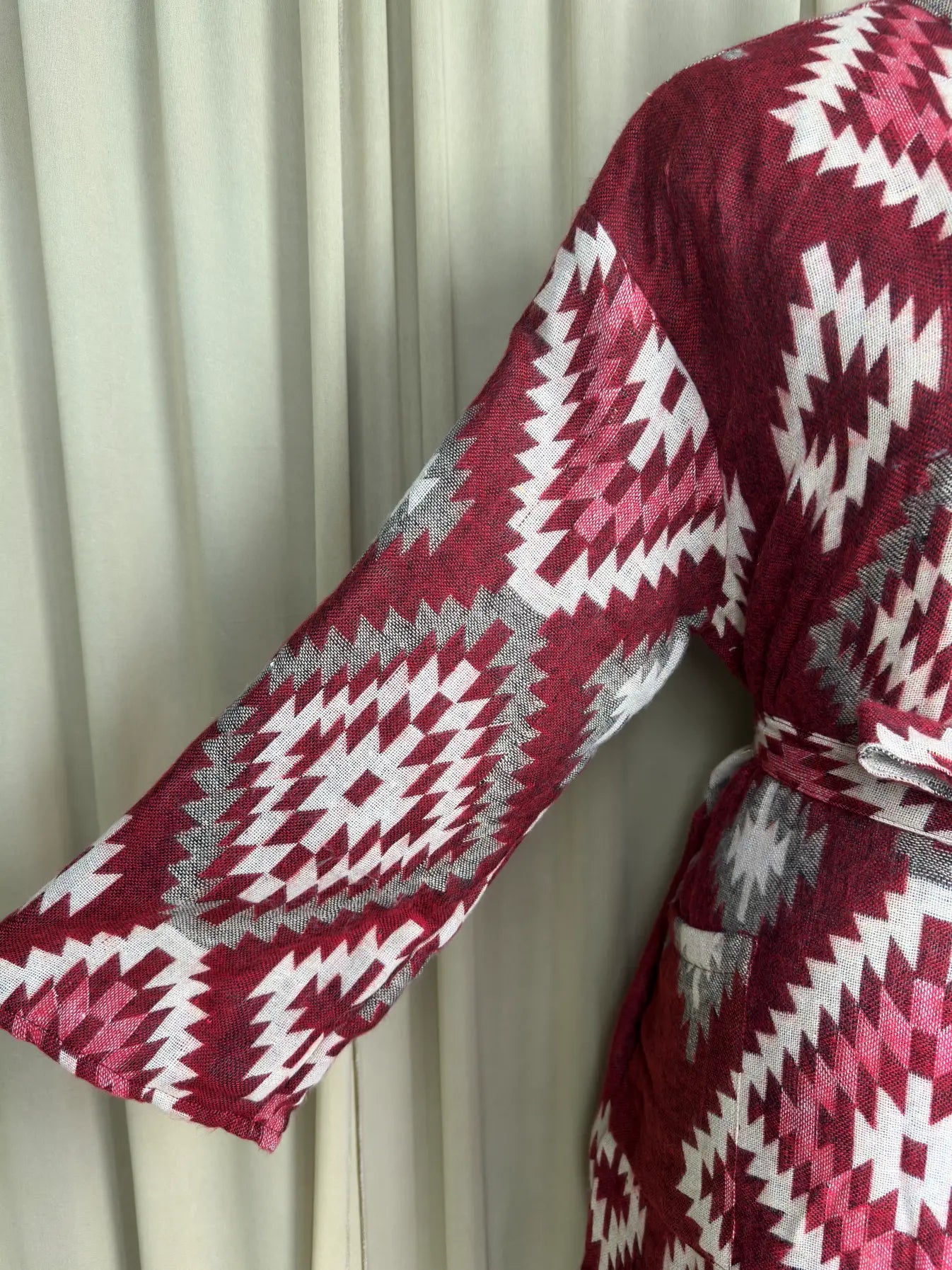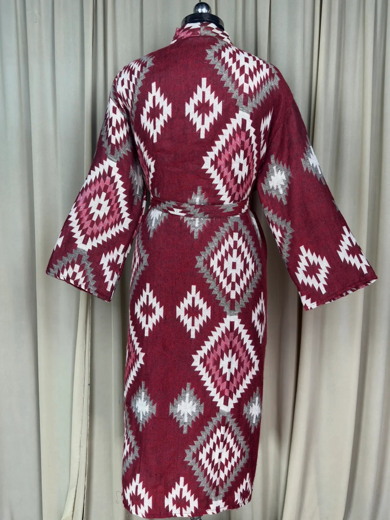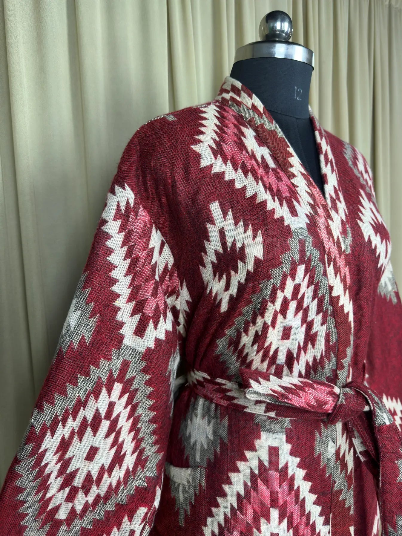 Cosy Wool Kimono in Elegant Geometric prints for this Cold Winter. Particularly known for being Super Warm and simultaneously Light Weight.